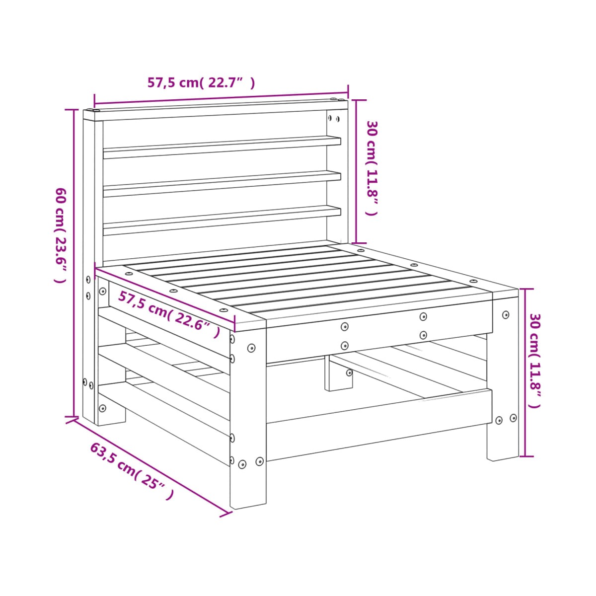 Este sofá central de madera, que destaca por su diseño de listones y sus mullidos cojines, será un gran complemento para el jardín, el patio o la terraza, para poder disfrutar de un rato agradable con la familia o los amigos. Madera de pino maciza: La madera de pino maciza es un bonito material natural. La madera de pino tiene vetas rectas, y los nudos dan al material su distintivo aspecto rústico.Cómodo asiento: El respaldo añade un plus de comodidad al sofá de jardín.Diseño modular: El sofá seccional es flexible y fácil de mover. ¡Puedes combinarlo con otros segmentos modulares de nuestra tienda para crear tus propias configuraciones personales de juegos de salón de jardín! Información útil:Para asegurarte de que tus muebles de exterior se mantengan hermosos, recomendamos protegerlos con una funda impermeable.