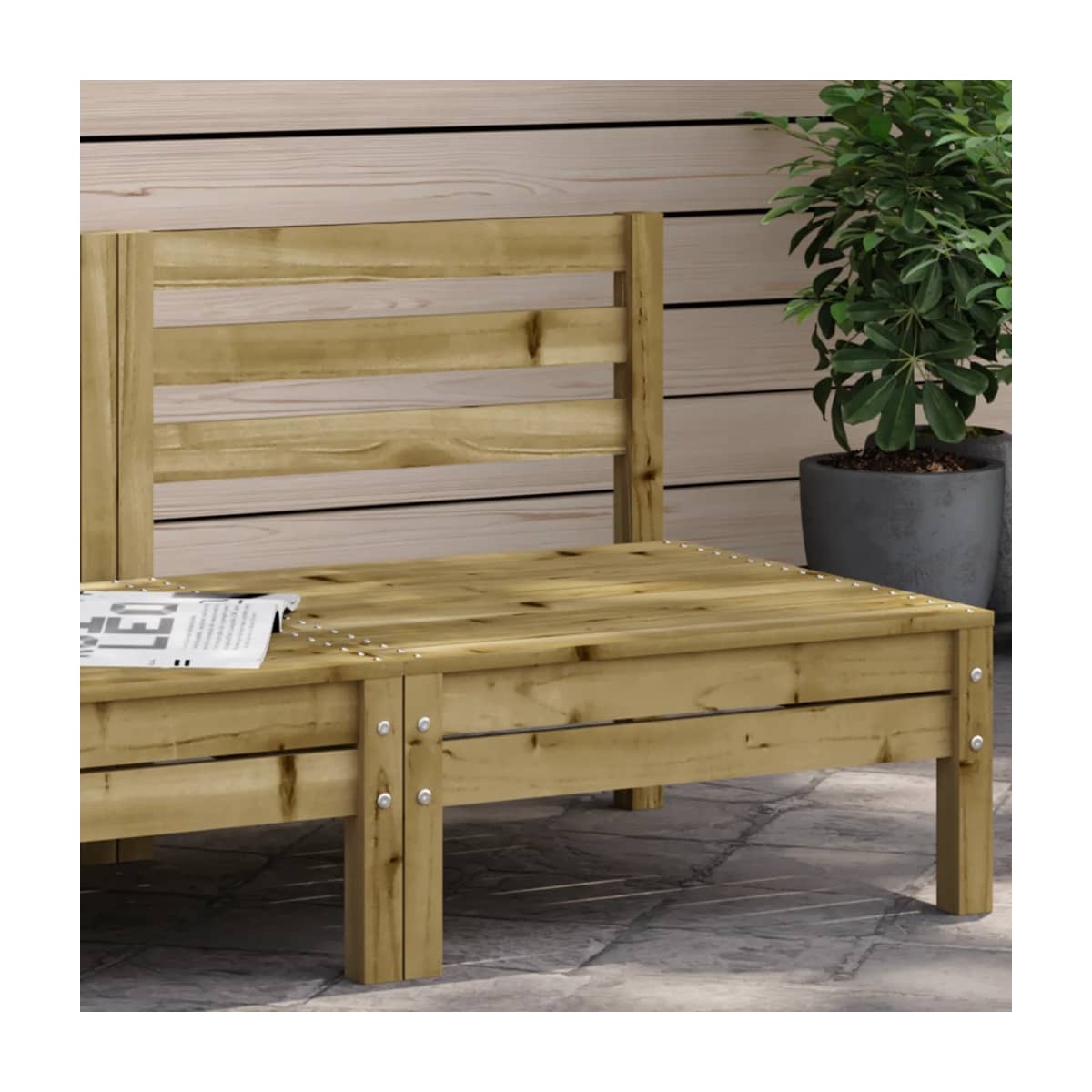 Este sofá de madera será un buen aporte para el jardín, la terraza o el patio, para charlar con familiares y amigos o simplemente disfrutar del buen tiempo. Madera impregnada: La madera maciza de pino es un bonito material natural. Tiene vetas rectas y los nudos dan al material su distintivo aspecto rústico. La impregnación es un proceso de conservación que se realiza mediante el uso de autoclaves. El tratamiento a presión aumenta la resistencia a la putrefacción y a la intemperie.Cómodo asiento: El respaldo añade un plus de comodidad al sofá de jardín.Diseño de listones: El diseño de listones del sofá de exterior evita que el agua se acumule de forma eficaz, para que el asiento permanezca seco y no se pudra.Diseño modular: Este sofá de patio tiene un diseño modular, por lo que es completamente flexible y fácil de mover para adaptarse a cualquier entorno. ¡Puedes combinarlo con otros segmentos modulares disponibles en el menú desplegable para crear tus propias configuraciones de muebles de jardín! Información útil:Para asegurarte de que tus muebles de exterior se mantengan hermosos, recomendamos protegerlos con una funda impermeable.