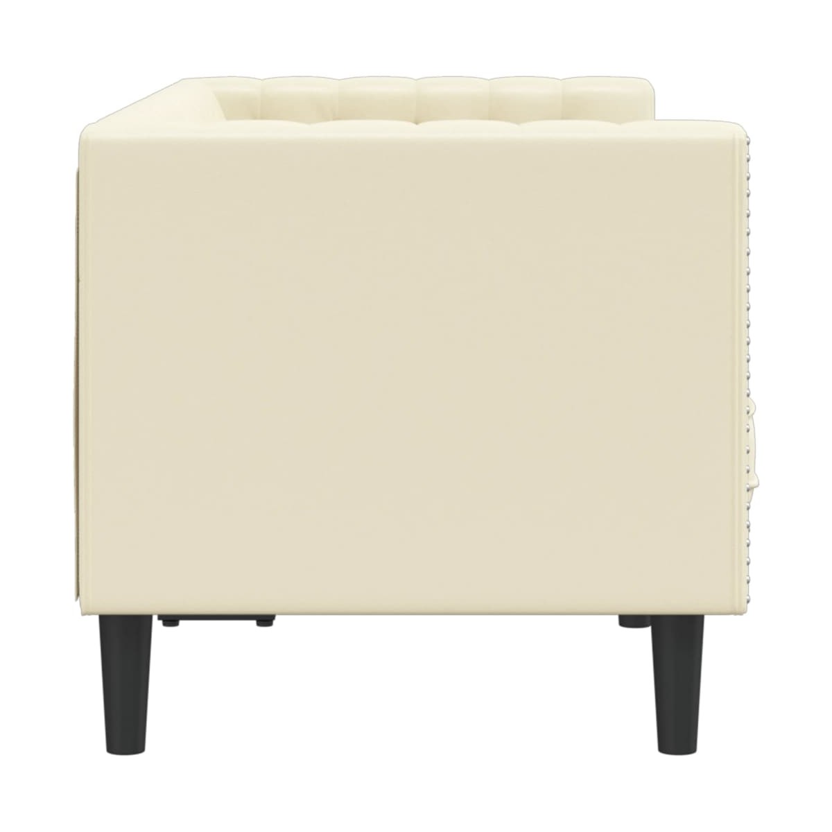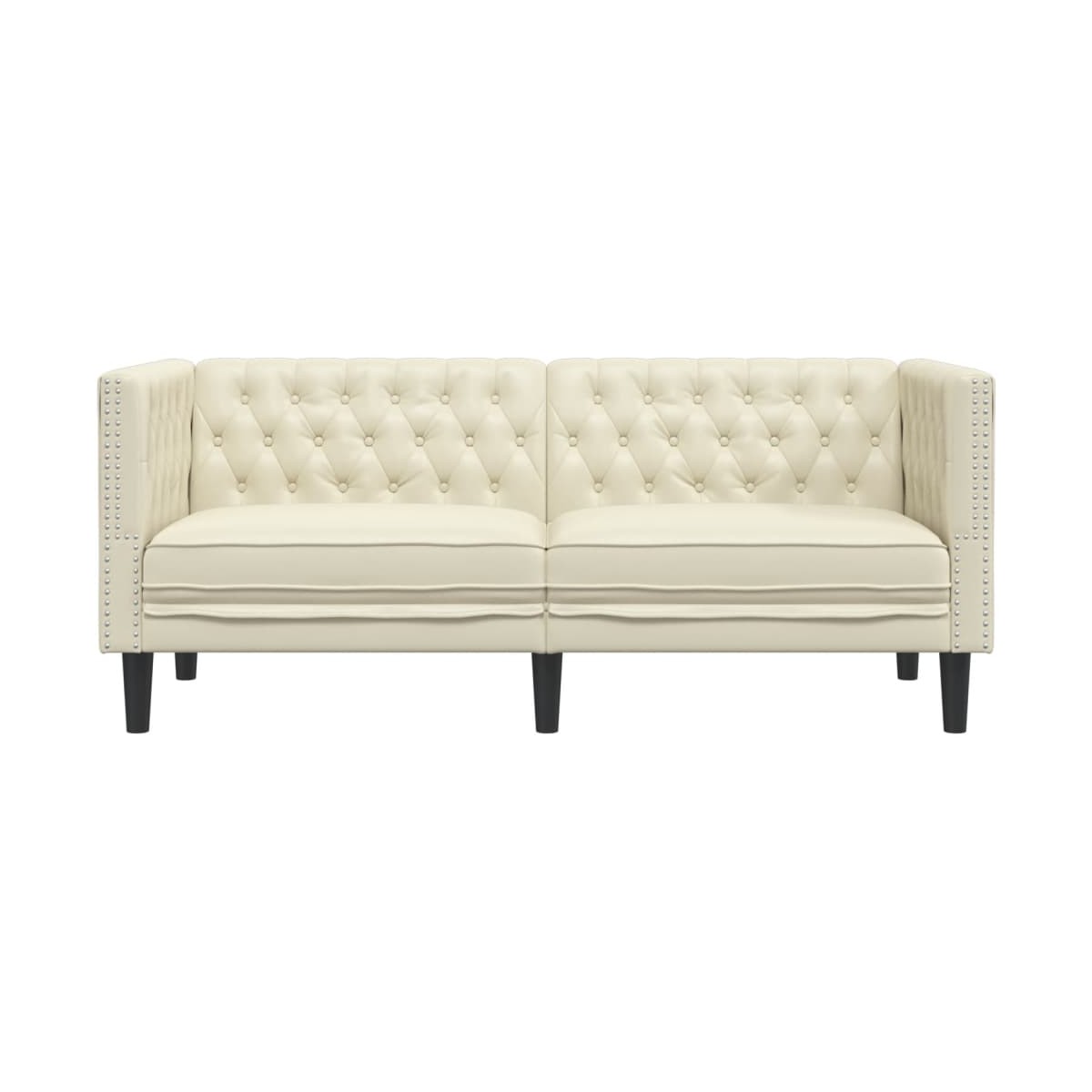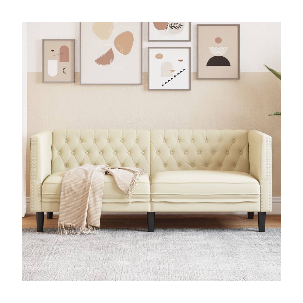 Este sofá chesterfield de 2 plazas es un excelente lugar para charlar, leer, ver la televisión o simplemente relajarse. Está pensado para ser el centro de atención de la casa. Larga duración y fácil mantenimiento: El cuero sintético es un material muy duradero y resistente a las manchas, por lo que es fácil de limpiar con un paño húmedo. Su superficie lisa le da un aspecto elegante que recuerda al cuero auténtico.Cómoda experiencia de asiento: El sofá es muy cómodo con los asientos, reposabrazos y cojines traseros con acolchado grueso.Estilo Chesterfield: Con el clásico respaldo y reposabrazos acolchados con botones, y una altura uniforme del respaldo y los brazos, el sillón mejorará cualquier habitación, proporcionando estilo y comodidad.Patas de apoyo: El sillón tapizado está soportado por patas resistentes, que garantizan su estabilidad, seguridad y firmeza.