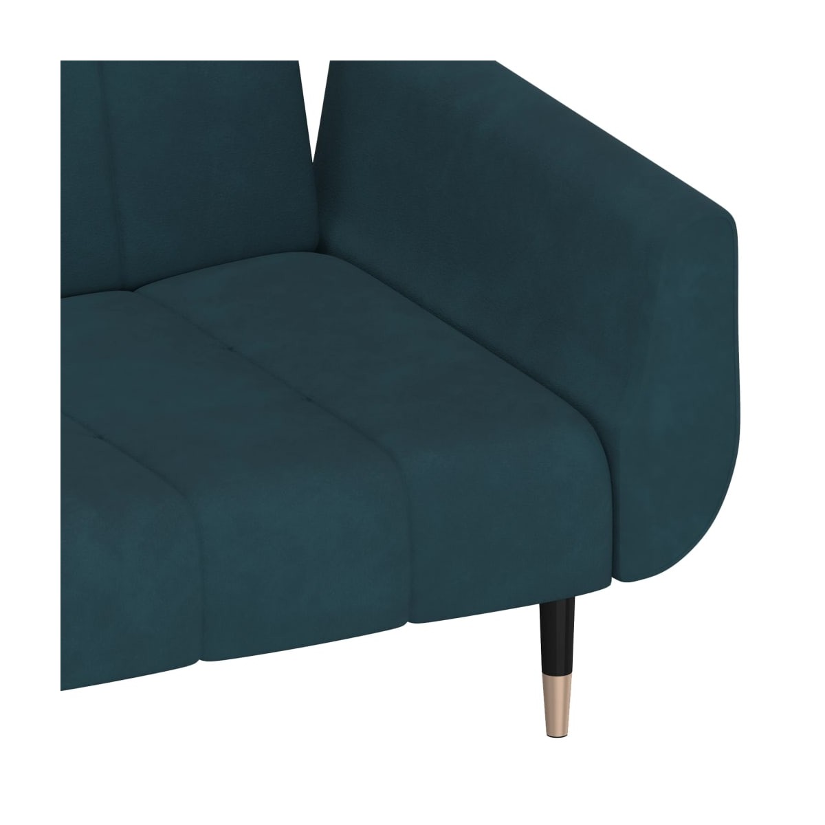 Este sofá cama tiene un diseño convertible. Por lo tanto, puedes elegir entre sentarte, descansar o dormir según tus preferencias y comodidad. Es el mueble ideal si necesitas un espacio extra para dormir con tus amigos e invitados durante la noche. Material suave y confortable: El tejido de terciopelo tiene una textura delicada y es suave y cómodo al tacto.Respaldo ajustable: Puedes empujar los dos reposabrazos separados parcial o completamente hacia abajo, para crear un lugar ideal para una siesta o una cama doble.Resistente y estable:El marco de madera y las patas metálicas del sofá cama garantizan resistencia y estabilidad.Dos almohadas para mayor comodidad : Se incluyen dos almohadas para mayor comodidad.
