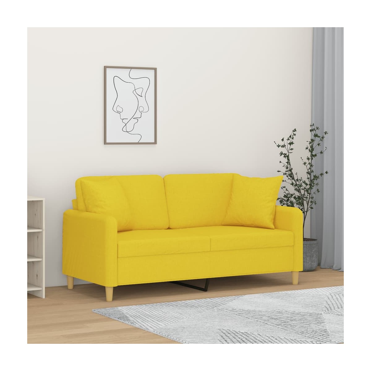 Este sofá de 2 plazas, que destaca por su diseño moderno y sus cojines, será un excelente lugar para charlar, ver la televisión o simplemente relajarse. Tela duradera: La tela posee un aspecto sencillo y limpio, además de ser transpirable y duradera.Estructura robusta y estable: La estructura de metal del sofá garantiza la robustez y la estabilidad.Cojines decorativos con relleno: Estos cojines vienen con insertos de algodón PP, por lo que no tendrás que preocuparte de comprar rellenos.Cómoda experiencia de asiento: El sofá es muy cómodo con los asientos, reposabrazos y cojines traseros con acolchado grueso. Además, los cojines decorativos pueden añadir comodidad adicional cuando estás sentado o tumbado.