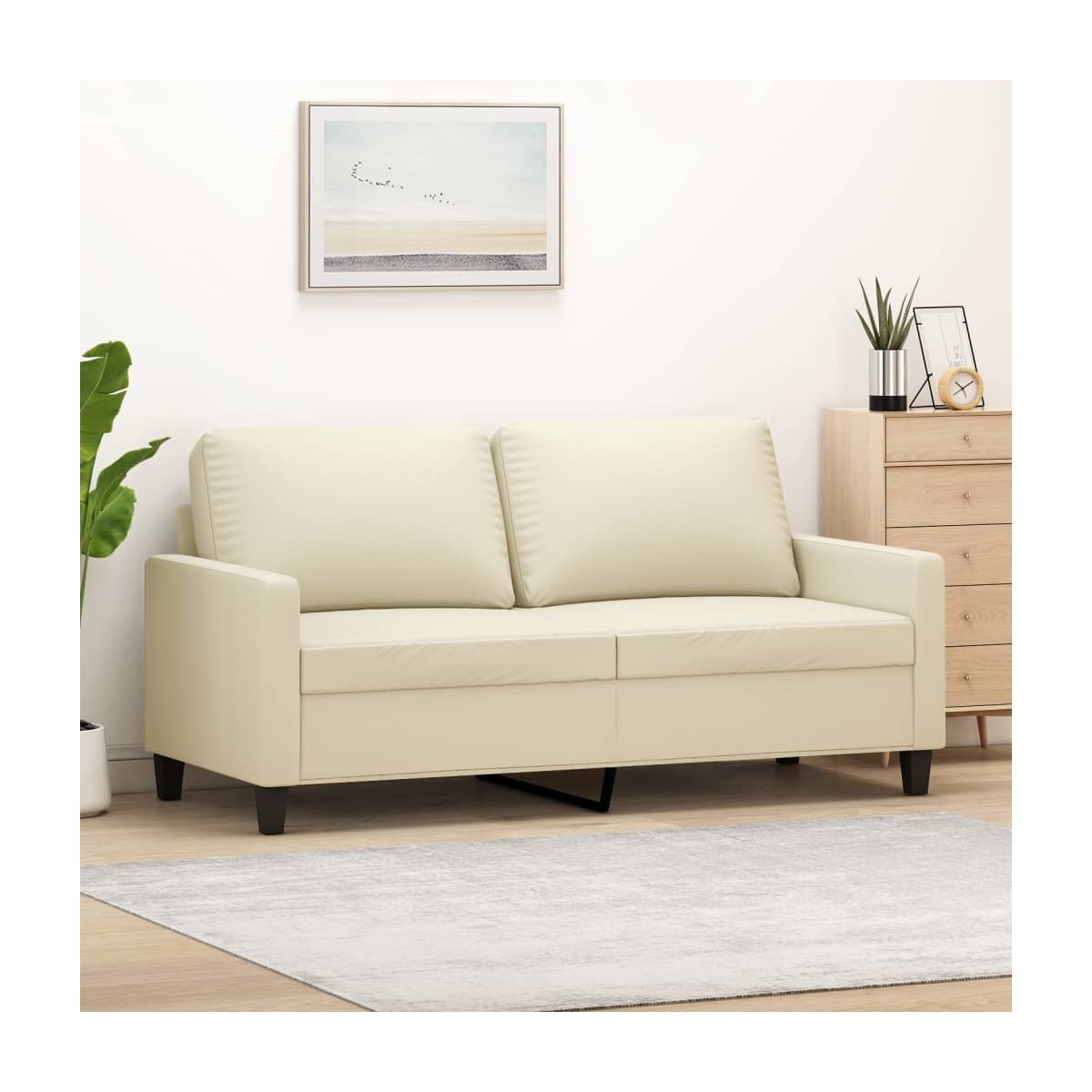 Este sofá de 2 plazas es un lugar excelente para charlar, leer, ver la televisión o simplemente relajarse. Está pensado para ser un foco de atención en tu casa. Material duradero: El cuero sintético de primera calidad es un material muy duradero. Es resistente a las manchas, por lo que es fácil de limpiar con un paño húmedo. Además, la superficie lisa da un aspecto lujoso y la belleza del cuero auténtico.Estructura robusta y estable: La estructura de metal del sofá tapizado garantiza la robustez y la estabilidad.Cómoda experiencia de asiento: El sofá es muy cómodo con los asientos, reposabrazos y cojines traseros con acolchado grueso.Diseño llamativo: Con un diseño sencillo pero moderno, este sillón está pensado para llamar la atención en tu habitación.