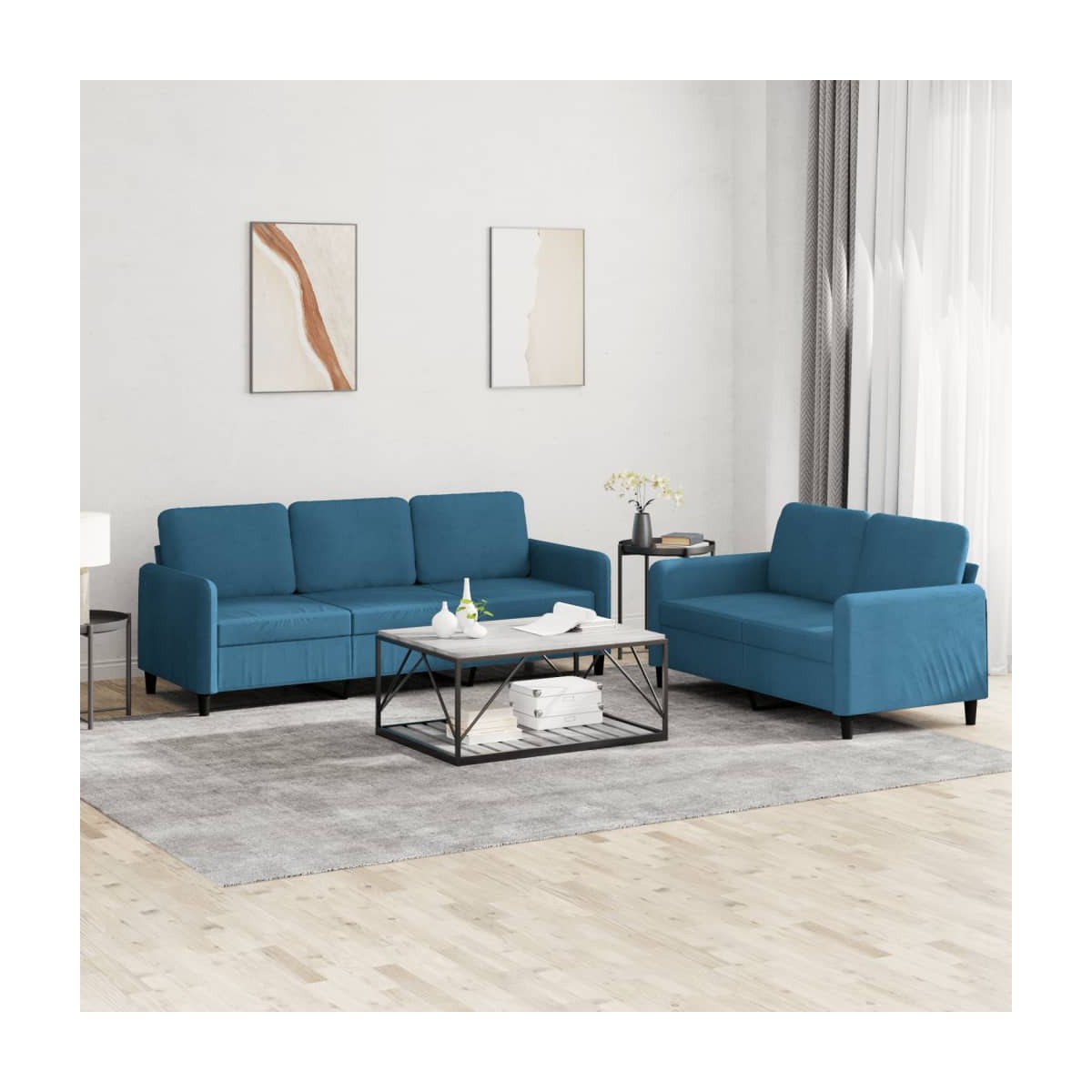 Este juego de sofás es un lugar excelente para charlar, leer, ver la televisión o simplemente relajarse. Está pensado para ser el centro de atención de la casa. Material suave y cómodo: La tela...