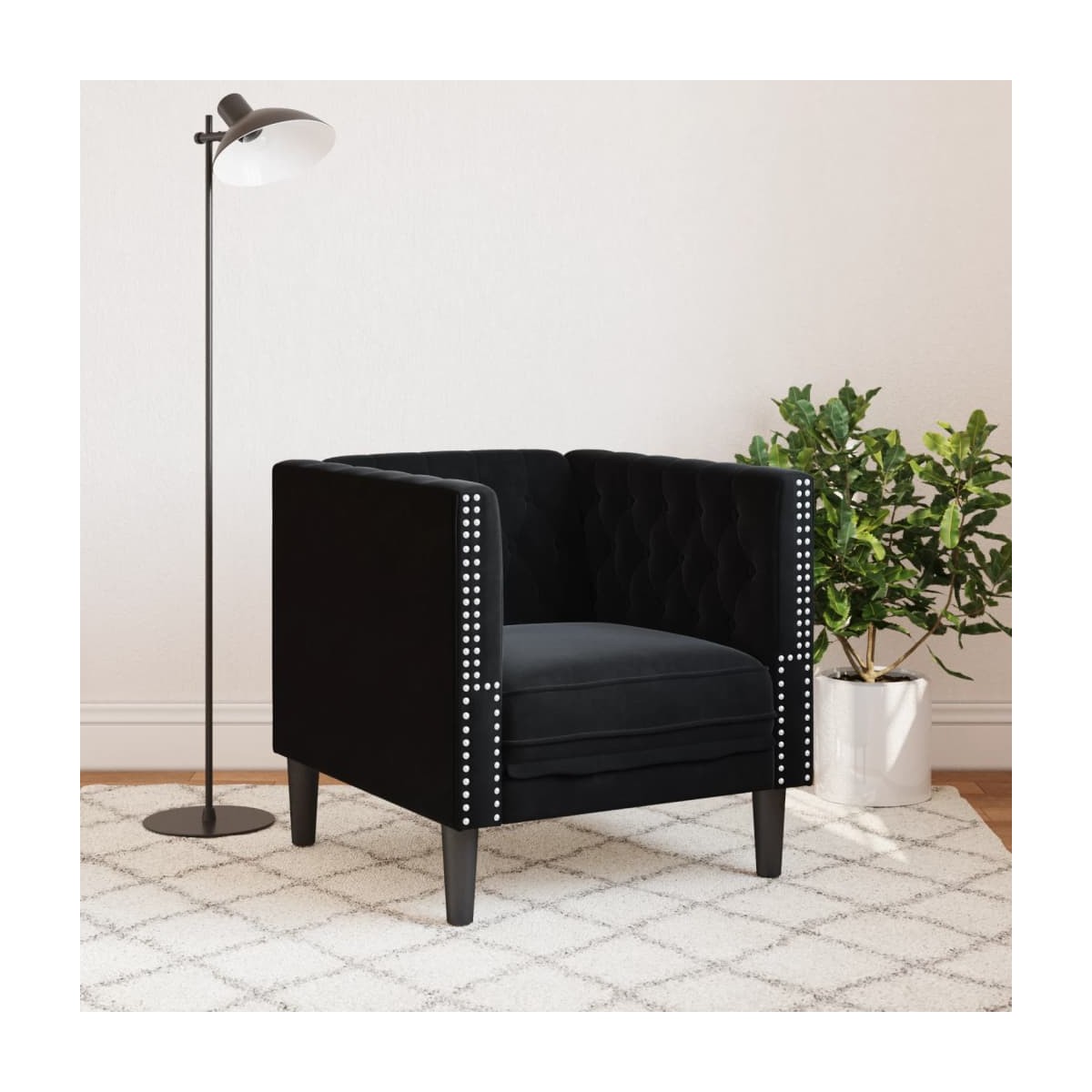 Este sofá chesterfield es un excelente lugar para charlar, leer, ver la televisión o simplemente relajarse. Está pensado para ser el centro de atención de la casa. Material suave y cómodo: La tela de terciopelo ofrece una superficie suave y lisa que proporciona una agradable sensación contra el tacto, aportándole calidez y el máximo confort.Experiencia de asiento cómoda: El sillón es muy cómodo gracias a su asiento, reposabrazos y respaldo acolchados.Estilo Chesterfield: Con el clásico respaldo y reposabrazos acolchados con botones, y una altura uniforme del respaldo y los brazos, el sillón mejorará cualquier habitación, proporcionando estilo y comodidad.Patas de apoyo: El sillón tapizado está soportado por patas resistentes, que garantizan su estabilidad, seguridad y firmeza.