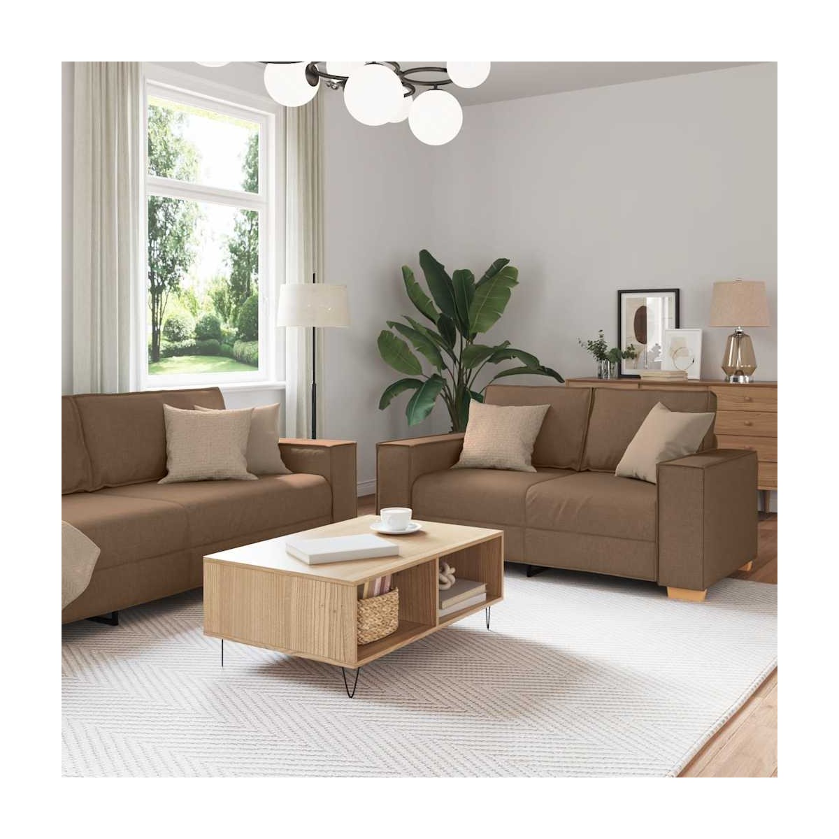 Este juego de sofás es un lugar excelente para charlar, leer, ver la televisión o simplemente relajarse. Está pensado para ser el centro de atención de la casa. Material suave y duradero: La tela de poliéster ofrece una combinación de suavidad, transpirabilidad y durabilidad, lo que garantiza que experimentes la máxima comodidad.Estructura robusta y estable: la estructura de madera y metal del sofá lounge garantiza robustez y estabilidad.Apoyabrazos anchos: Los apoyabrazos anchos brindan un soporte resistente y un espacio generoso para todo, desde su teléfono móvil hasta un tazón de bocadillos de película, y también son lo suficientemente cómodos para apoyar la cabeza cuando se acuesta para una siesta.Cómoda experiencia de asiento: el sofá tapizado viene con un asiento y respaldo densamente acolchados, así como reposabrazos para una gran comodidad.Uso versátil: perfecto para salas de estar, oficinas y habitaciones de invitados, este conjunto de sofás se adapta sin esfuerzo a varios entornos, lo que lo convierte en un complemento práctico para cualquier hogar u oficina.