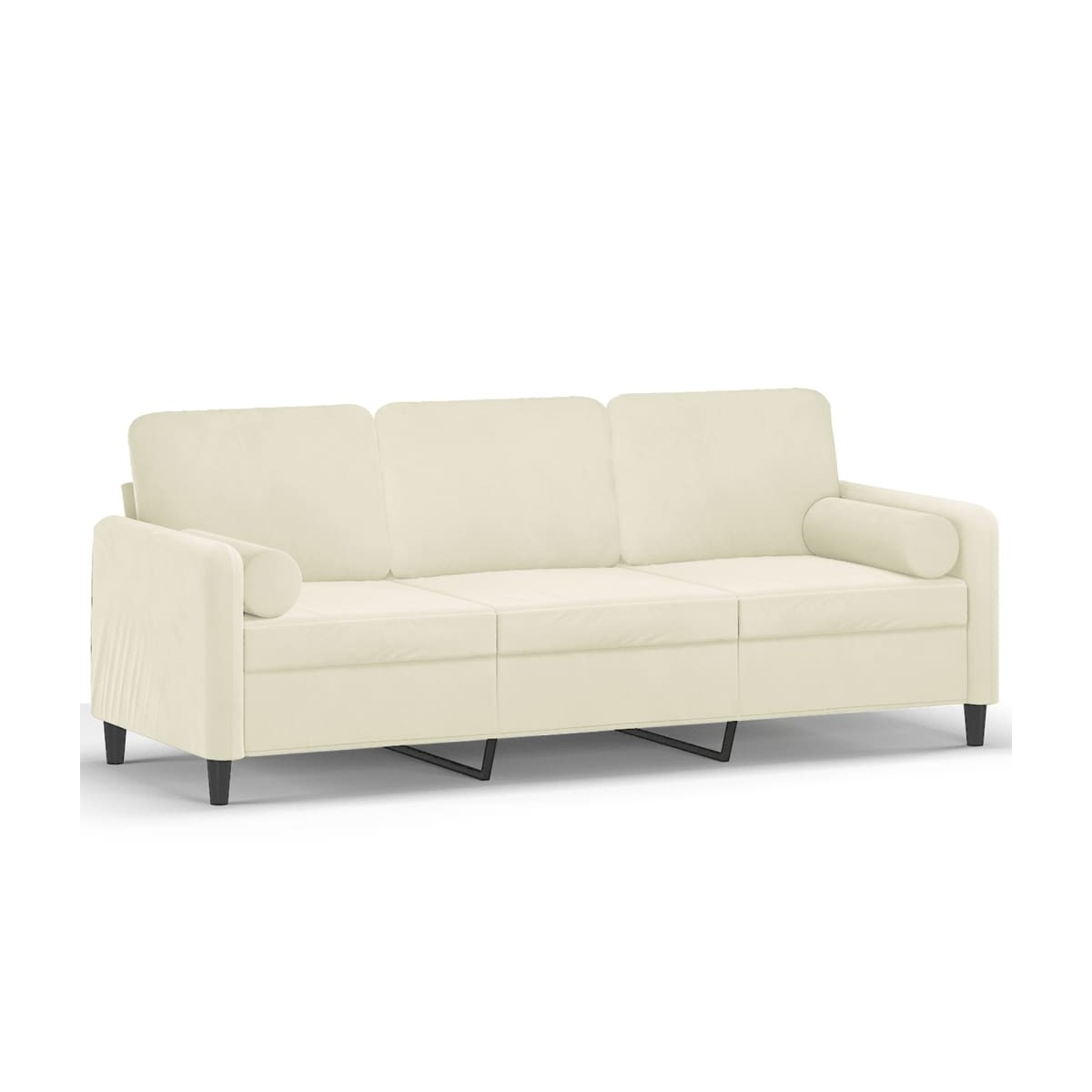Este sofá de 3 plazas, que destaca por su diseño moderno y sus cojines, será un excelente lugar para charlar, ver la televisión o simplemente relajarse. Terciopelo suave: El terciopelo es una tela suave y lujosa, reconocida por su denso pelo de fibras cortadas de forma uniforme que tienen una suave pelusa. La tela de terciopelo posee un característico y suave tacto, lo que hace que sea cómoda al tacto.Estructura robusta y estable: La estructura de metal del sofá garantiza la robustez y la estabilidad.Fundas de almohada extraíbles: Gracias al cierre de cremallera, las fundas de estos cojines son fáciles de quitar y limpiar cuando se necesita.Cómoda experiencia de asiento: El sofá es muy cómodo con los asientos, reposabrazos y cojines traseros con acolchado grueso. Además, los cojines decorativos pueden añadir comodidad adicional cuando estás sentado o tumbado.