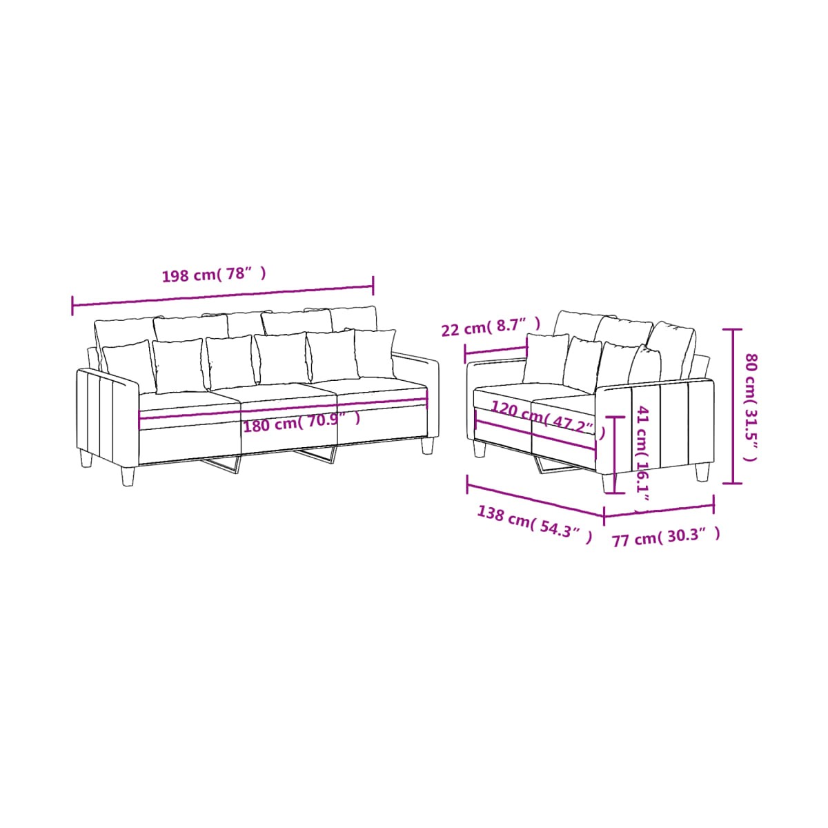 Este juego de sofás es un lugar excelente para charlar, leer, ver la televisión o simplemente relajarse. Está pensado para ser el centro de atención de la casa. Tela duradera: La tela posee un aspecto sencillo y limpio, además de ser transpirable y duradera.Estructura robusta y estable: La estructura de madera contrachapada y metal del sofá garantiza su solidez y estabilidad. Cómodo asiento: El sofá es muy cómodo gracias al asiento con relleno, los reposabrazos y la almohada trasera.