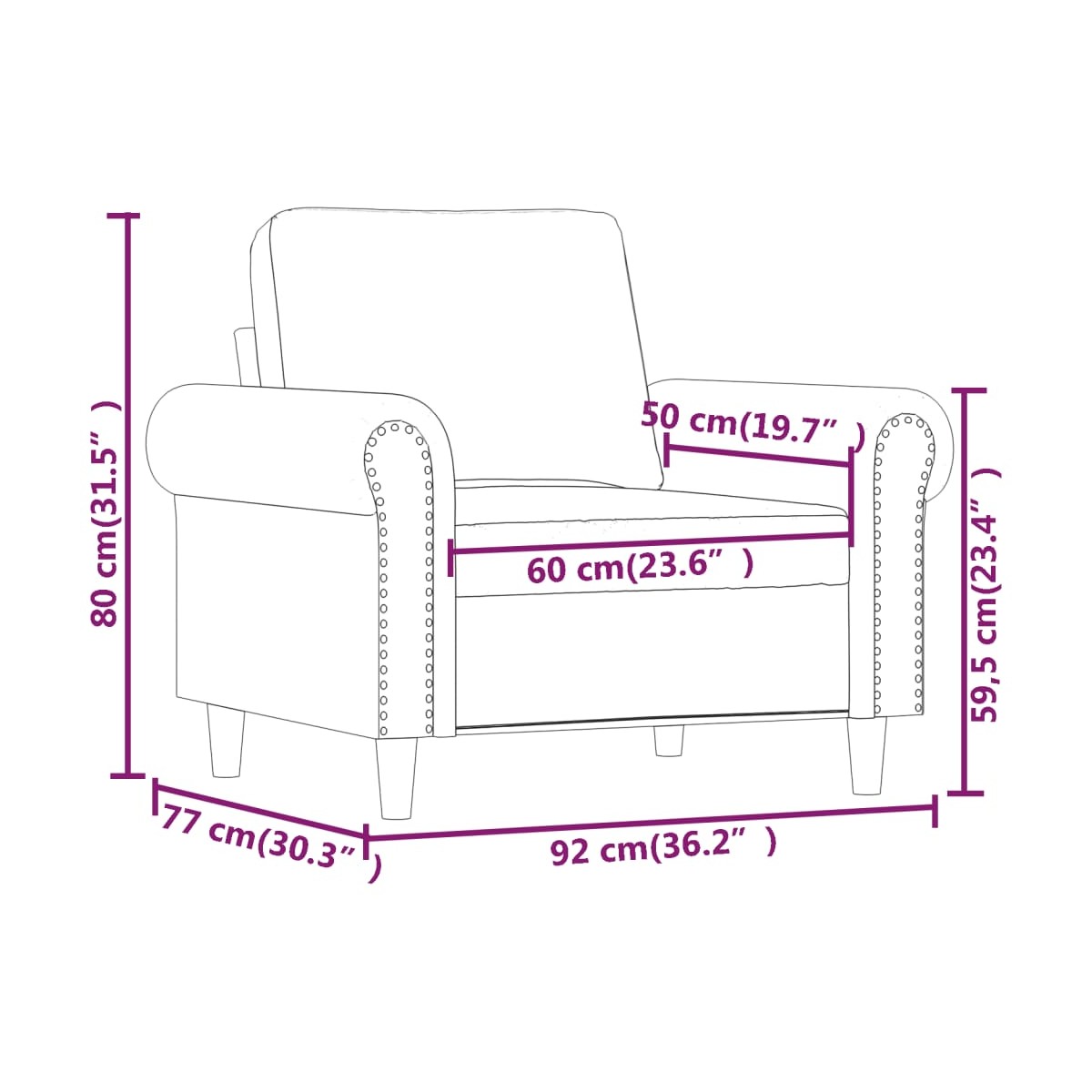 - Profundidad del asiento: 50 cm