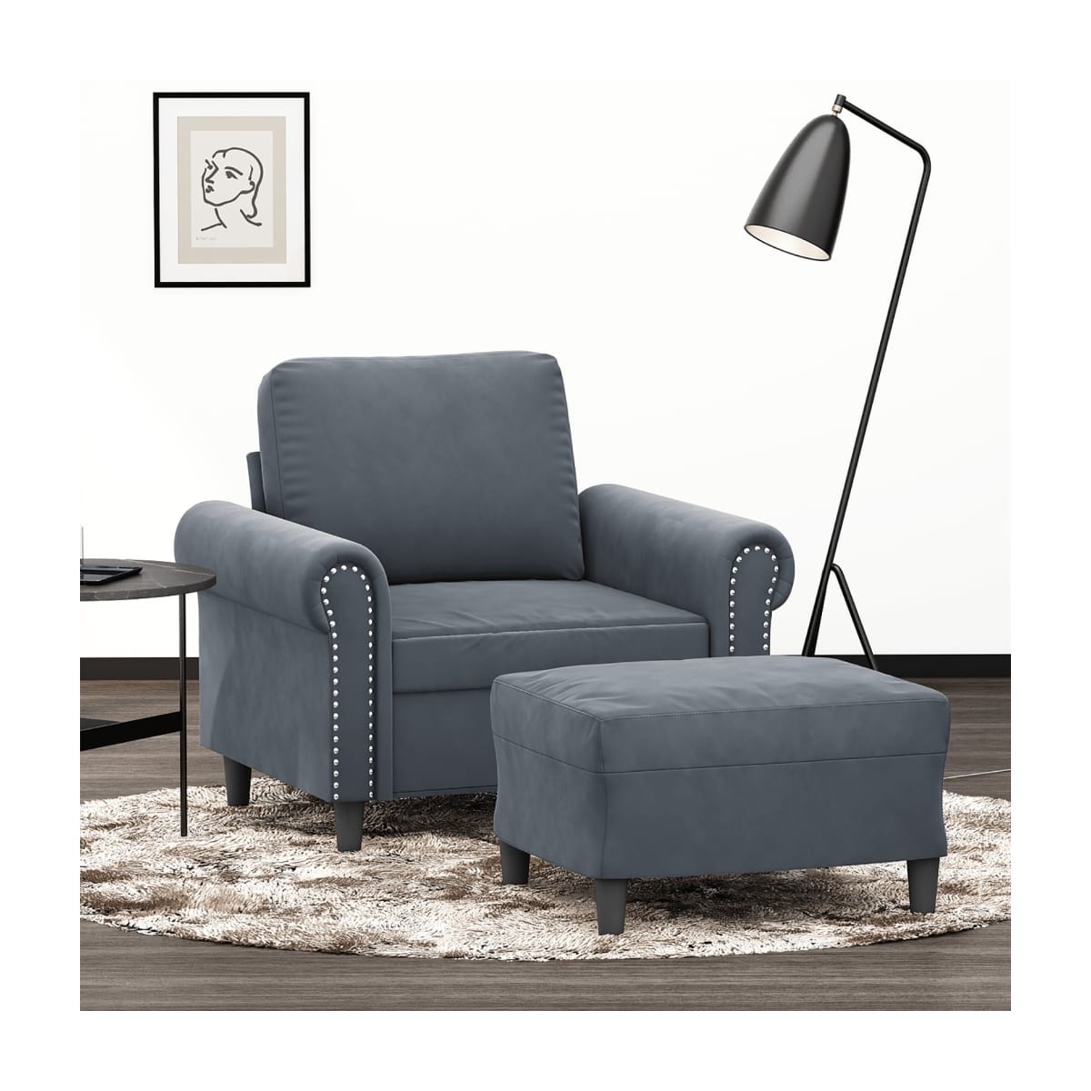 Este sillón con taburete es un lugar excelente para charlar, leer, ver la televisión o simplemente relajarte. Está pensado para ser el centro de atención de la casa. Terciopelo duradero: El terciopelo es una tela suave y cálida, agradable al tacto.Estructura robusta y estable: La estructura de madera contrachapada y metal del sofá con reposapiés garantiza su solidez y estabilidad.Cómoda experiencia en el asiento: El sillón es muy cómodo con el asiento, los reposabrazos y la almohada trasera con acolchado grueso.Taburete versátil: El taburete es adecuado para descansar los pies cuando te recuestas en el sofá o sillón reclinable, y te ofrece un asiento adicional en la estancia. Además, el diseño sencillo y el tamaño compacto lo hacen ideal para casi todos los espacios de tu hogar.Diseño llamativo: Con un diseño sencillo a la par que moderno, este sillón con taburete está pensado para llamar la atención en la estancia.