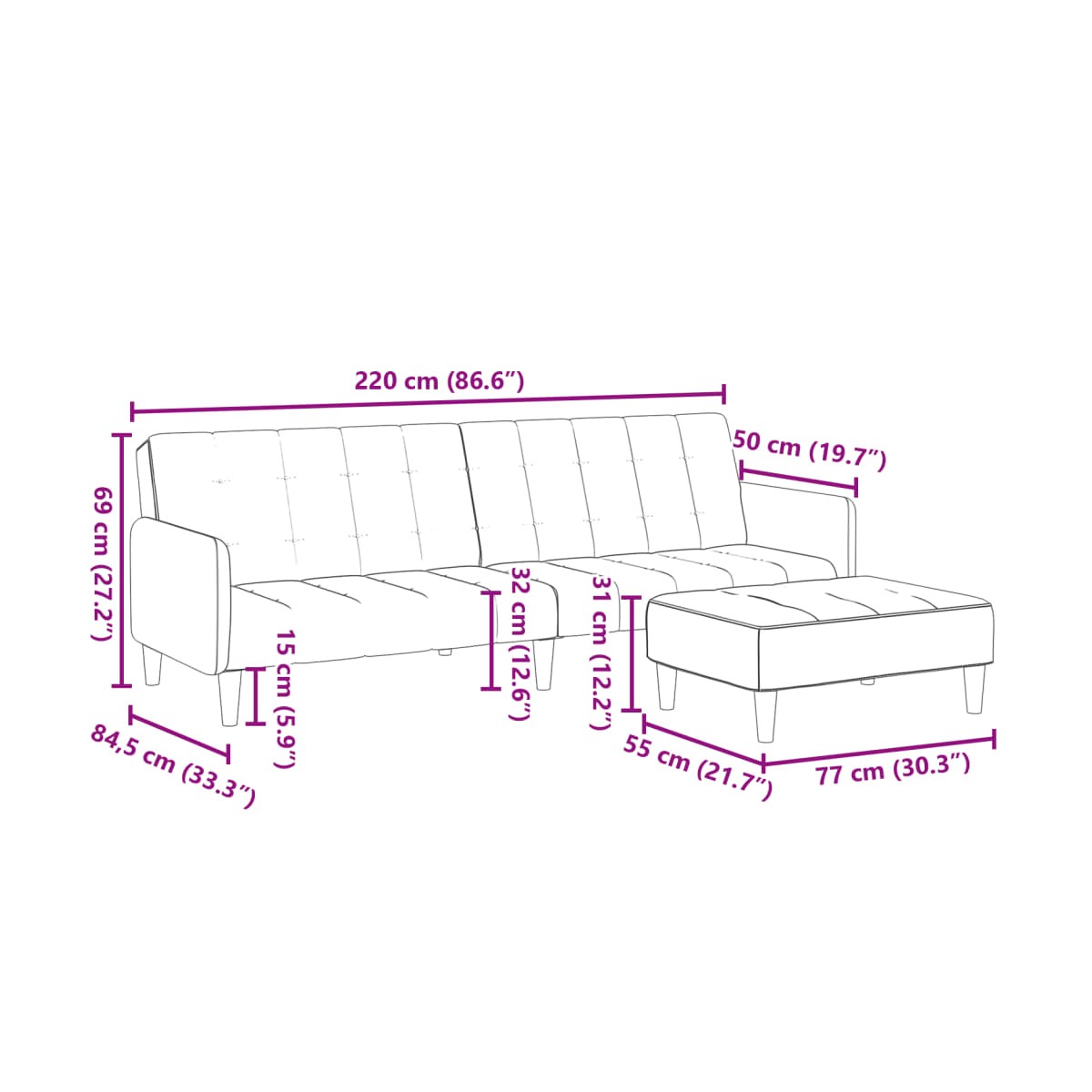 Este sofá cama con reposapiés es una solución perfecta para alojar huéspedes durante la noche mientras proporciona un espacio cómodo para sentarse durante el día. Función 2 en 1: Este sofá cama se convierte rápida y fácilmente de sofá a cama y viceversa. Puedes empujar los dos respaldos separados parcial o completamente hacia abajo para crear un lugar ideal para una siesta o una cama individual.Cómoda experiencia de asiento: Este sofá cama está recubierto de un suave y cómodo terciopelo. La tela de terciopelo ofrece una superficie suave y lisa que proporciona una agradable sensación contra el tacto, aportándole calidez y el máximo confort.Estructura robusta y estable: La estructura de madera del sofá cama garantiza su resistencia y estabilidad.Multiusos: Esta cama de invitados con reposapiés es ideal para varios espacios como salas de estar, sótanos, habitaciones pequeñas, dormitorios, apartamentos, estudios y oficinas. Proporciona una feliz experiencia de entretenimiento familiar y también mejora la decoración de la habitación.