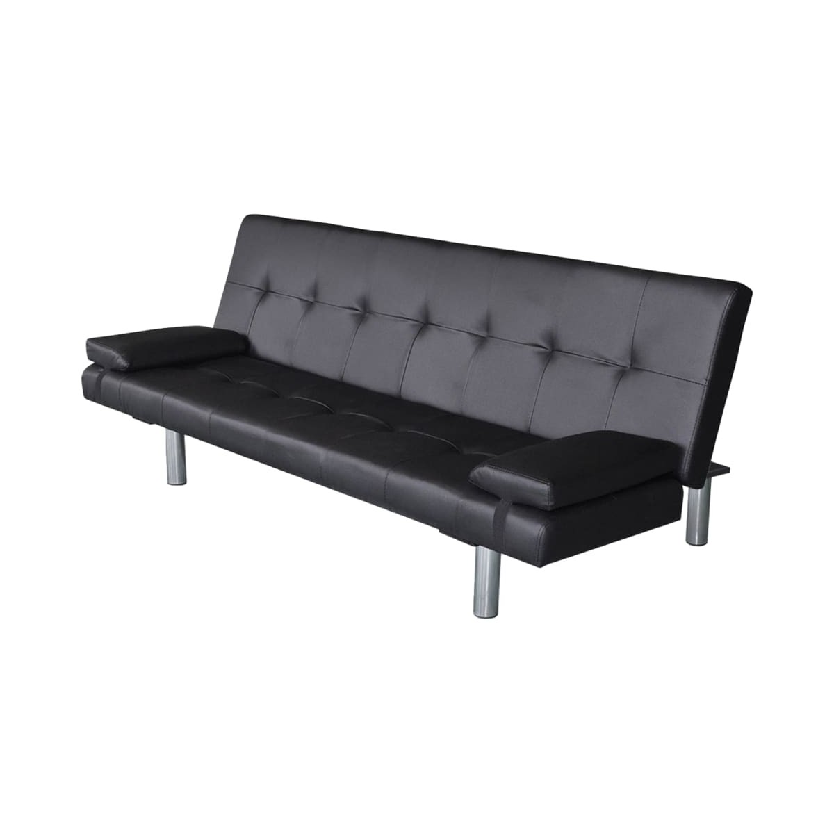 Sofá cama con dos cojines cuero artificial ajustable negro