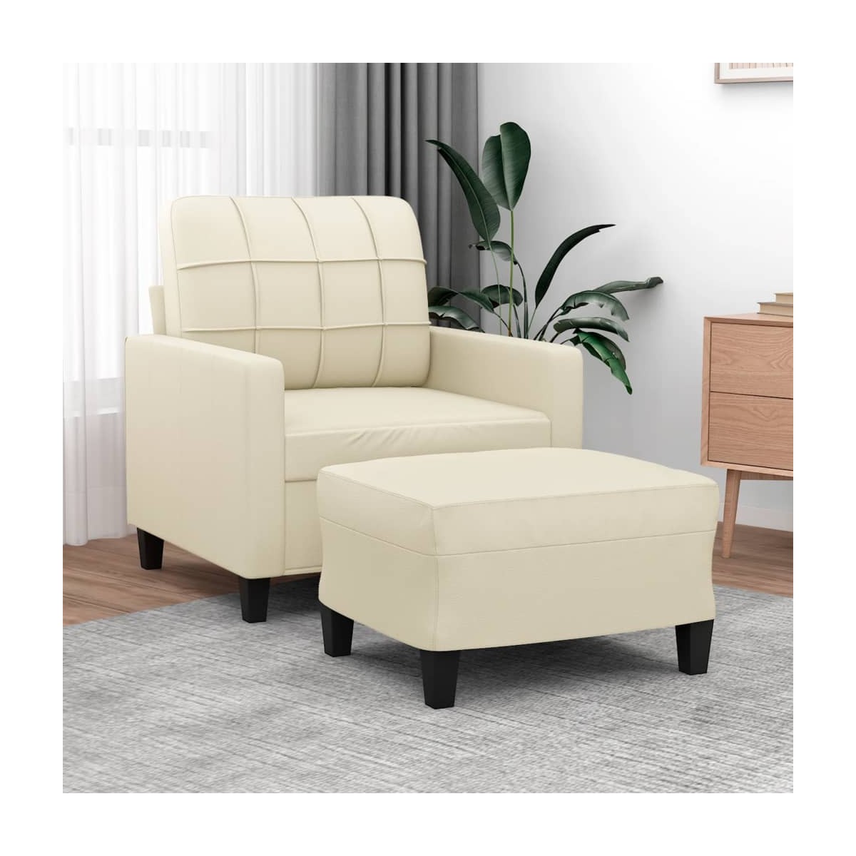 Este sillón con taburete es un lugar excelente para charlar, leer, ver la televisión o simplemente relajarte. Está pensado para ser el centro de atención de la casa. Material duradero: El cuero sintético de primera calidad es un material muy duradero. Es resistente a las manchas, por lo que es fácil de limpiar con un paño húmedo. Además, la superficie lisa da un aspecto lujoso y la belleza del cuero auténtico.Estructura robusta y estable: La estructura de madera contrachapada y metal del sofá con reposapiés garantiza su solidez y estabilidad.Cómoda experiencia en el asiento: El sillón es muy cómodo con el asiento, los reposabrazos y la almohada trasera con acolchado grueso.Taburete versátil: El taburete es adecuado para descansar los pies cuando te recuestas en el sofá o sillón reclinable, y te ofrece un asiento adicional en la estancia. Además, el diseño sencillo y el tamaño compacto lo hacen ideal para casi todos los espacios de tu hogar.Diseño llamativo: Con un diseño sencillo a la par que moderno, este sillón con taburete está pensado para llamar la atención en la estancia.