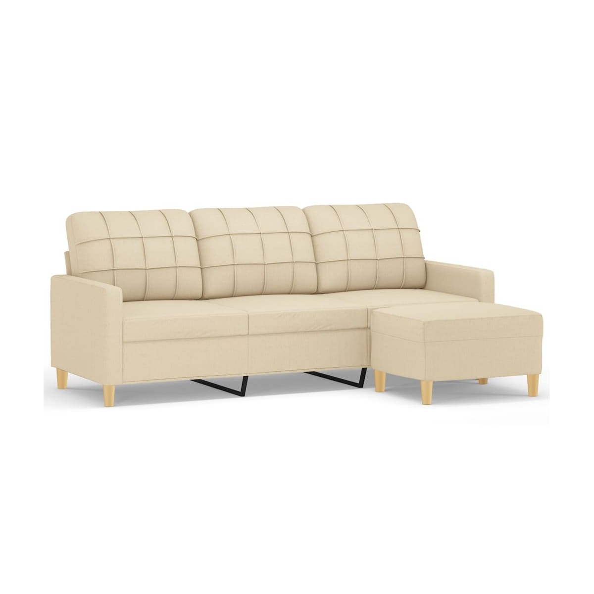 Este sofá de 3 plazas con taburete es un lugar excelente para charlar, leer, ver la televisión o simplemente relajarte. Está pensado para ser el centro de atención de la casa. Tela duradera: La tela posee un aspecto sencillo y limpio, además de ser transpirable y duradera.Estructura robusta y estable: La estructura de madera contrachapada y metal del sofá con reposapiés garantiza su solidez y estabilidad.Asiento cómodo: El sillón resulta muy cómodo gracias a los gruesos acolchados de los asientos, los reposabrazos y las almohadas del respaldo.Taburete versátil: El taburete es adecuado para descansar los pies cuando te recuestas en el sofá o sillón reclinable, y te ofrece un asiento adicional en la estancia. Además, el diseño sencillo y el tamaño compacto lo hacen ideal para casi todos los espacios de tu hogar.Diseño llamativo: Con un diseño sencillo a la par que moderno, este sillón con taburete está pensado para llamar la atención en la estancia.