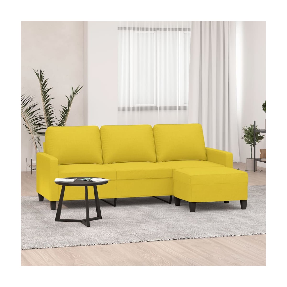 Este sofá de 3 plazas con taburete es un lugar excelente para charlar, leer, ver la televisión o simplemente relajarte. Está pensado para ser el centro de atención de la casa. Tela duradera: La tela posee un aspecto sencillo y limpio, además de ser transpirable y duradera.Estructura robusta y estable: La estructura de madera contrachapada y metal del sofá con reposapiés garantiza su solidez y estabilidad.Asiento cómodo: El sillón resulta muy cómodo gracias a los gruesos acolchados de los asientos, los reposabrazos y las almohadas del respaldo.Taburete versátil: El taburete es adecuado para descansar los pies cuando te recuestas en el sofá o sillón reclinable, y te ofrece un asiento adicional en la estancia. Además, el diseño sencillo y el tamaño compacto lo hacen ideal para casi todos los espacios de tu hogar.Diseño llamativo: Con un diseño sencillo a la par que moderno, este sillón con taburete está pensado para llamar la atención en la estancia.
