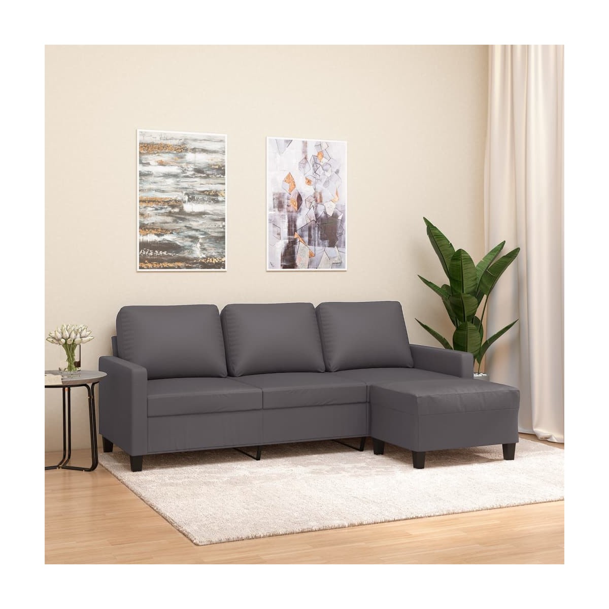Este sofá de 3 plazas con taburete es un lugar excelente para charlar, leer, ver la televisión o simplemente relajarte. Está pensado para ser el centro de atención de la casa. Material duradero: El cuero sintético de primera calidad es un material muy duradero. Es resistente a las manchas, por lo que es fácil de limpiar con un paño húmedo. Además, la superficie lisa da un aspecto lujoso y la belleza del cuero auténtico.Estructura robusta y estable: La estructura de madera contrachapada y metal del sofá con reposapiés garantiza su solidez y estabilidad.Asiento cómodo: El sillón resulta muy cómodo gracias a los gruesos acolchados de los asientos, los reposabrazos y las almohadas del respaldo.Taburete versátil: El taburete es adecuado para descansar los pies cuando te recuestas en el sofá o sillón reclinable, y te ofrece un asiento adicional en la estancia. Además, el diseño sencillo y el tamaño compacto lo hacen ideal para casi todos los espacios de tu hogar.Diseño llamativo: Con un diseño sencillo a la par que moderno, este sillón con taburete está pensado para llamar la atención en la estancia.