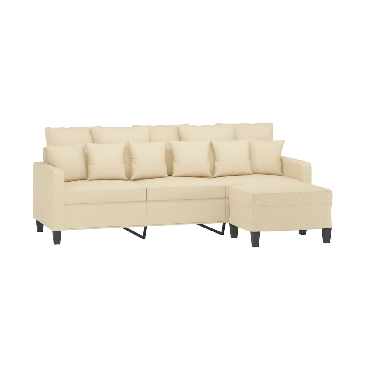 Este sofá de 3 plazas con taburete es un lugar excelente para charlar, leer, ver la televisión o simplemente relajarte. Está pensado para ser el centro de atención de la casa. Tela duradera: La tela posee un aspecto sencillo y limpio, además de ser transpirable y duradera.Estructura robusta y estable: La estructura de madera contrachapada y metal del sofá con reposapiés garantiza su solidez y estabilidad.Asiento cómodo: El sillón resulta muy cómodo gracias a los gruesos acolchados de los asientos, los reposabrazos y las almohadas del respaldo.Taburete versátil: El taburete es adecuado para descansar los pies cuando te recuestas en el sofá o sillón reclinable, y te ofrece un asiento adicional en la estancia. Además, el diseño sencillo y el tamaño compacto lo hacen ideal para casi todos los espacios de tu hogar.Diseño llamativo: Con un diseño sencillo a la par que moderno, este sillón con taburete está pensado para llamar la atención en la estancia.