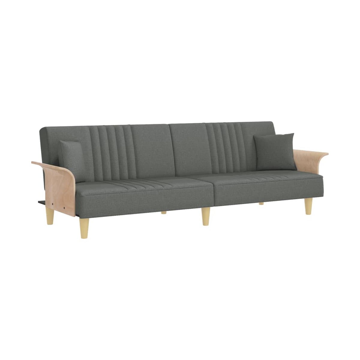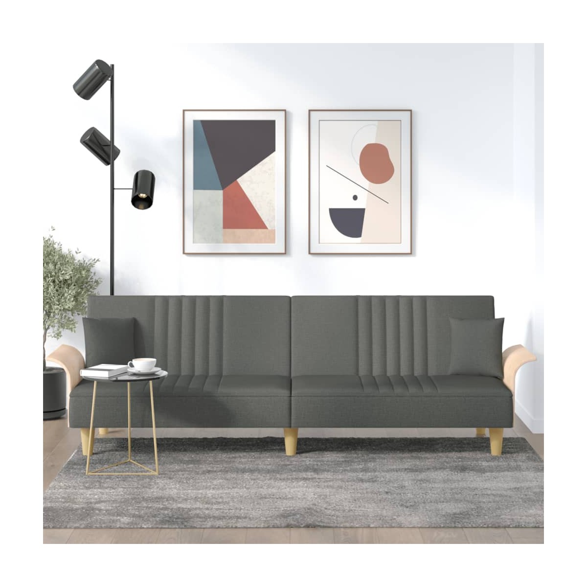 Este sofá cama es perfecto para que tus invitados duerman por la noche y para sentarte cómodamente durante el día. Material duradero: La tela posee un aspecto sencillo y limpio, y es transpirable y duradera. Respaldo ajustable: Puedes empujar los dos respaldos separados del sofá cama parcial o totalmente hacia abajo para crear un lugar ideal para una siesta o una cama doble. Cómodo asiento: El sofá cama es muy cómodo gracias a los respaldos, los reposabrazos y los asientos con acolchado grueso.Prácticos cojines: Estos cojines no solo mejoran la decoración, sino que también añaden un plus de comodidad cuando estás sentado o acostado. Estructura robusta y estable: La estructura de madera contrachapada del sofá cama garantiza su solidez y estabilidad.
