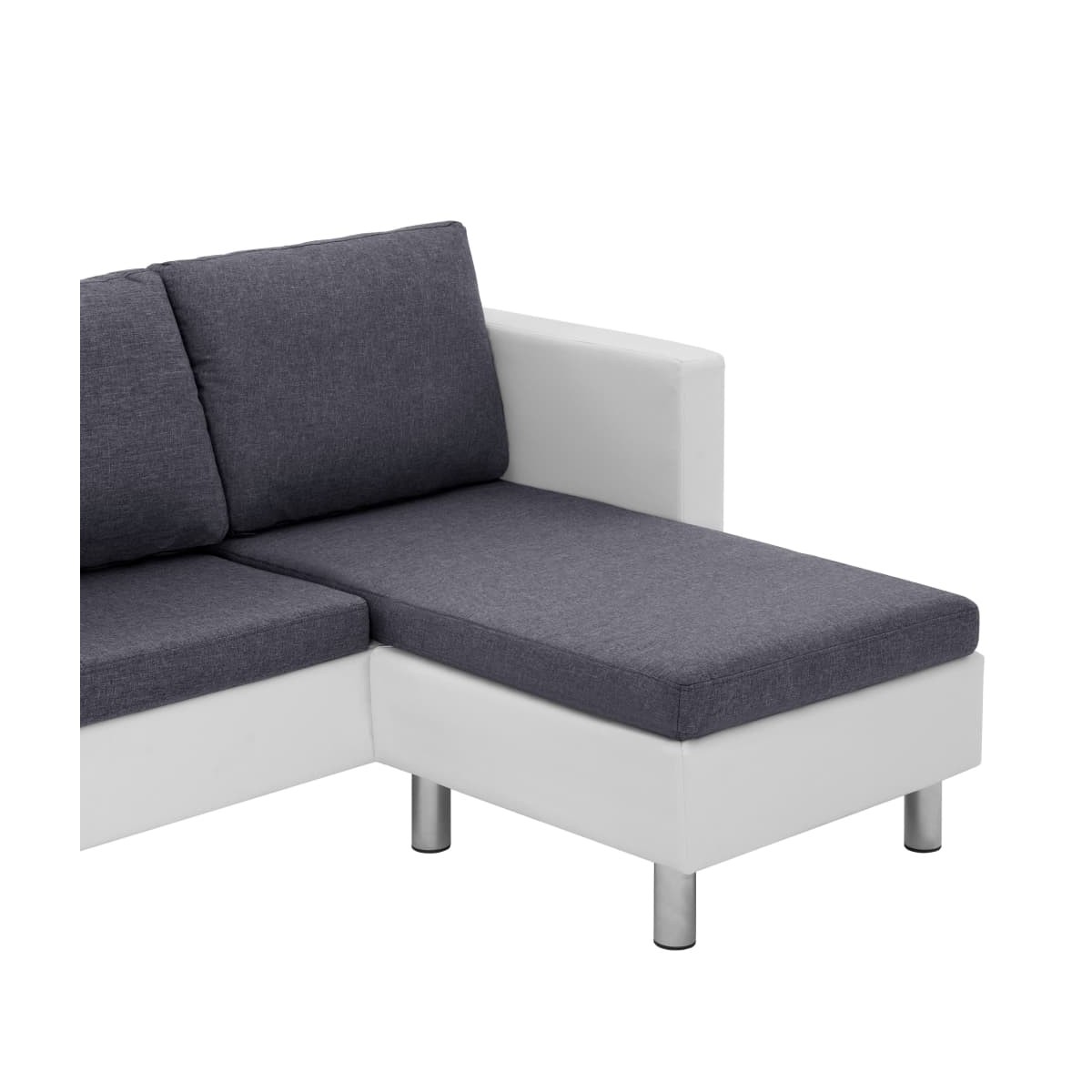 - Color: Blanco (sofá) + gris oscuro (cojines)