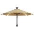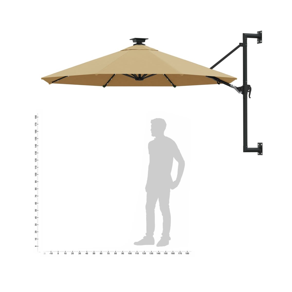 Esta elegante sombrilla de jardín de pared protege la salud de tu piel bloqueando la mayor parte de los rayos UV. Fabricada en poliéster con protección UV y anti-decoloración, la cubierta de la sombrilla te proporciona una protección óptima contra el sol y es fácil de limpiar. El diseño exclusivo de este paraguas te permite inclinarlo para bloquear el sol mientras se dirige hacia el horizonte. El palo de metal fuerte, junto con las 8 varillas duraderas, hace que el parasol de pared sea muy estable y duradero. La sombrilla de jardín se puede abrir y cerrar fácilmente gracias al mecanismo del manivela. Las 28 luces LED integradas crean un ambiente acogedor y romántico por la noche. Ten en cuenta que recomendamos tratar la tela de la sombrilla con un aerosol impermeabilizante si se ve sometida a fuertes lluvias. La altura de esta sombrilla de pared depende de la altura a la que esté montada en la pared.