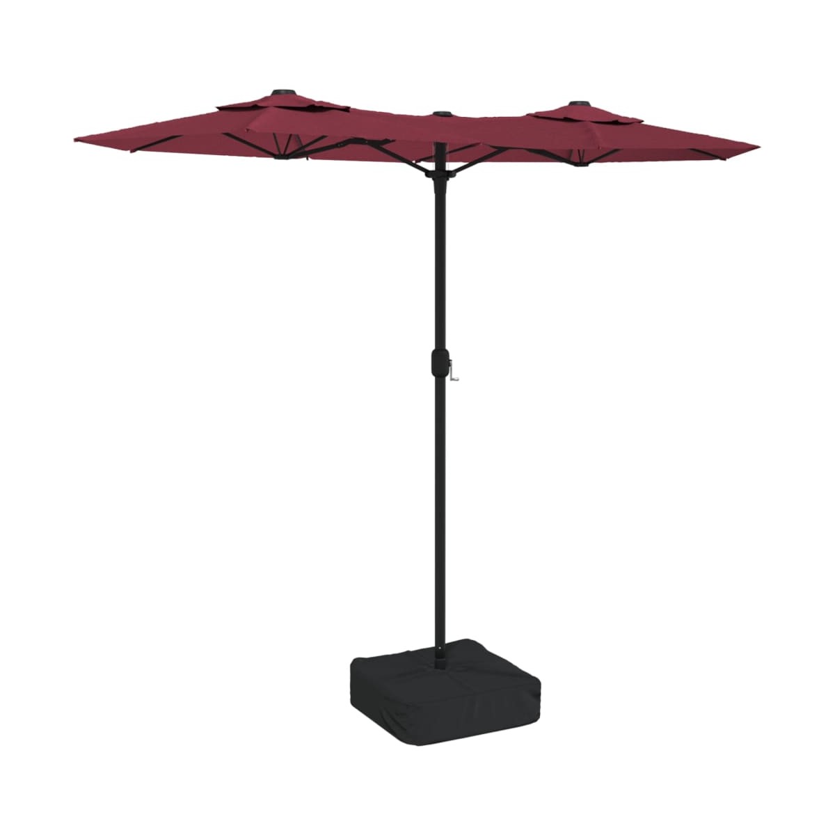 Esta elegante sombrilla de jardín de dos parasoles con LED es la elección perfecta para crear algo de sombra y protegerte de los dañinos rayos UV del sol. Material duradero: Hecha de poliéster antidecoloración y con protección UV, la sombrilla de jardín te proporciona la protección óptima contra el sol y es fácil de limpiar.Estructura resistente: El fuerte poste de hierro con recubrimiento en polvo, junto con las varillas duraderas, hacen que la sombrilla de jardín sea muy estable y resistente.Luces LED brillantes: Las luces LED integradas de la sombrilla iluminan tu espacio al aire libre y crean un ambiente acogedor y romántico cuando se pone el sol.Mecanismo de manivela: Gracias al mecanismo de manivela, la sombrilla se abre y cierra fácilmente.Base fuerte: La base con bolsa de arena asegura que la sombrilla sea resistente y estable incluso con viento fuerte y lluvia intensa.