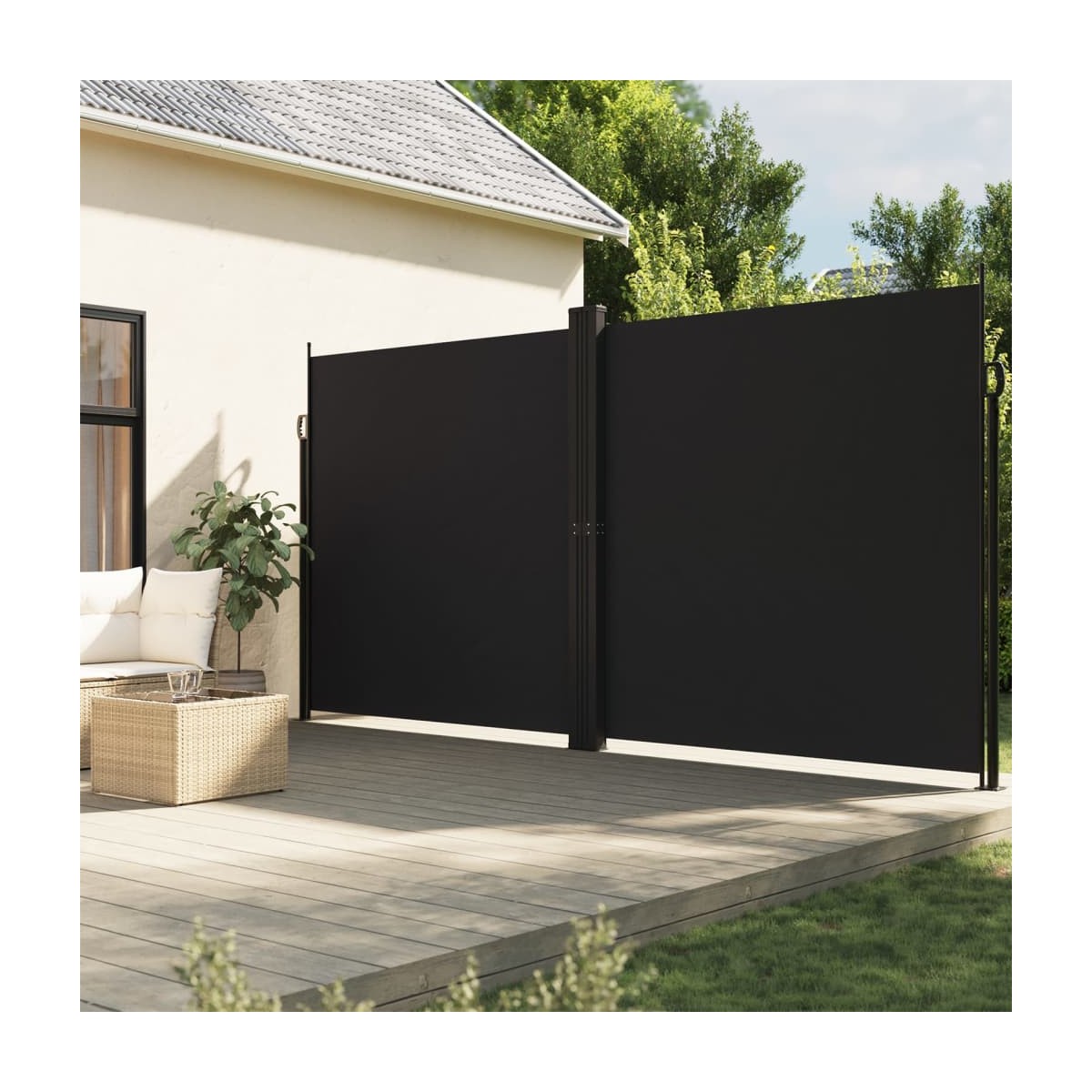 ¡Crea un oasis instantáneo y privado en tu balcón, terraza o patio con este toldo lateral retráctil! Resistente al agua y a los rayos UV: Esta mosquitera de jardín está hecha de poliéster 100% con un revestimiento de poliuretano (PU), que proporciona una buena transpirabilidad y una excelente protección contra el viento, el sol, el agua y los rayos UV.Diseño práctico: Gracias a su diseño retráctil, la mosquitera de jardín se enrolla automáticamente cuando retiras el asa del poste.Fácil de instalar: Los postes se pueden fijar fácilmente al suelo para mayor estabilidad y seguridad utilizando los accesorios de montaje incluidos.Amplios usos: Este versátil toldo lateral se puede utilizar en una gran variedad de entornos, tanto al aire libre como patio trasero, terraza, jardín, porche, balcón y en interiores como oficina, clínica, estudio, vestidor, para crear un espacio extra en la pared según sea necesario.