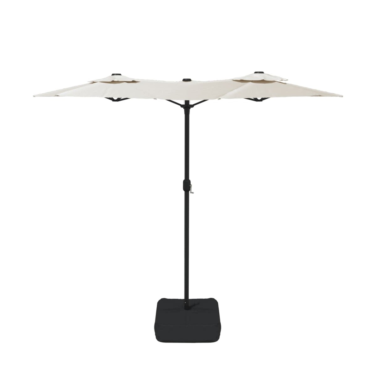 Esta elegante sombrilla de dos parasoles con LED es la elección perfecta para crear algo de sombra y protegerte de los dañinos rayos UV del sol. Material duradero: Hecha de poliéster antidecoloración y con protección UV, la sombrilla de jardín te proporciona la protección óptima contra el sol y es fácil de limpiar.Estructura resistente: El fuerte poste de hierro con recubrimiento en polvo, junto con las varillas duraderas, hacen que la sombrilla de jardín sea muy estable y resistente.Luces LED brillantes: Las luces LED integradas de la sombrilla iluminan tu espacio al aire libre y crean un ambiente acogedor y romántico cuando se pone el sol.Mecanismo de manivela: Gracias al mecanismo de manivela, la sombrilla se abre y cierra fácilmente.Base fuerte: La base con bolsa de arena asegura que la sombrilla sea resistente y estable incluso con viento fuerte y lluvia intensa.