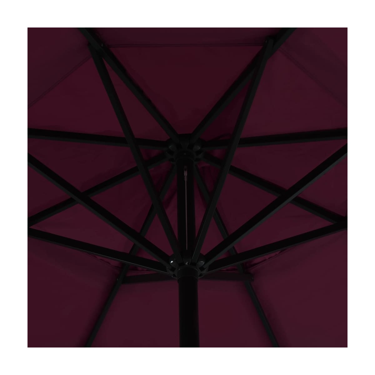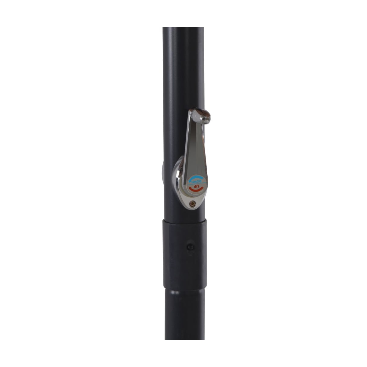 Esta elegante sombrilla de jardín es perfecta para crear algo de sombra y protegerte de los dañinos rayos UV del sol. Hecha de poliéster con protección UV y antidescoloramiento, la funda de sombrilla te ofrece una protección óptima contra el sol y es fácil de limpiar. Viene con una robusta base en cruz para añadir estabilidad. El fuerte mástil de aluminio, junto con las 8 resistentes varillas, hacen que la sombrilla sea muy estable y duradera. Nuestra sombrilla de jardín puede abrirse y cerrarse fácilmente gracias al mecanismo de manivela. El artículo es fácil de montar. Ten en cuenta que recomendamos tratar la tela de la sombrilla con un aerosol impermeabilizante si se ve sometida a fuertes lluvias.