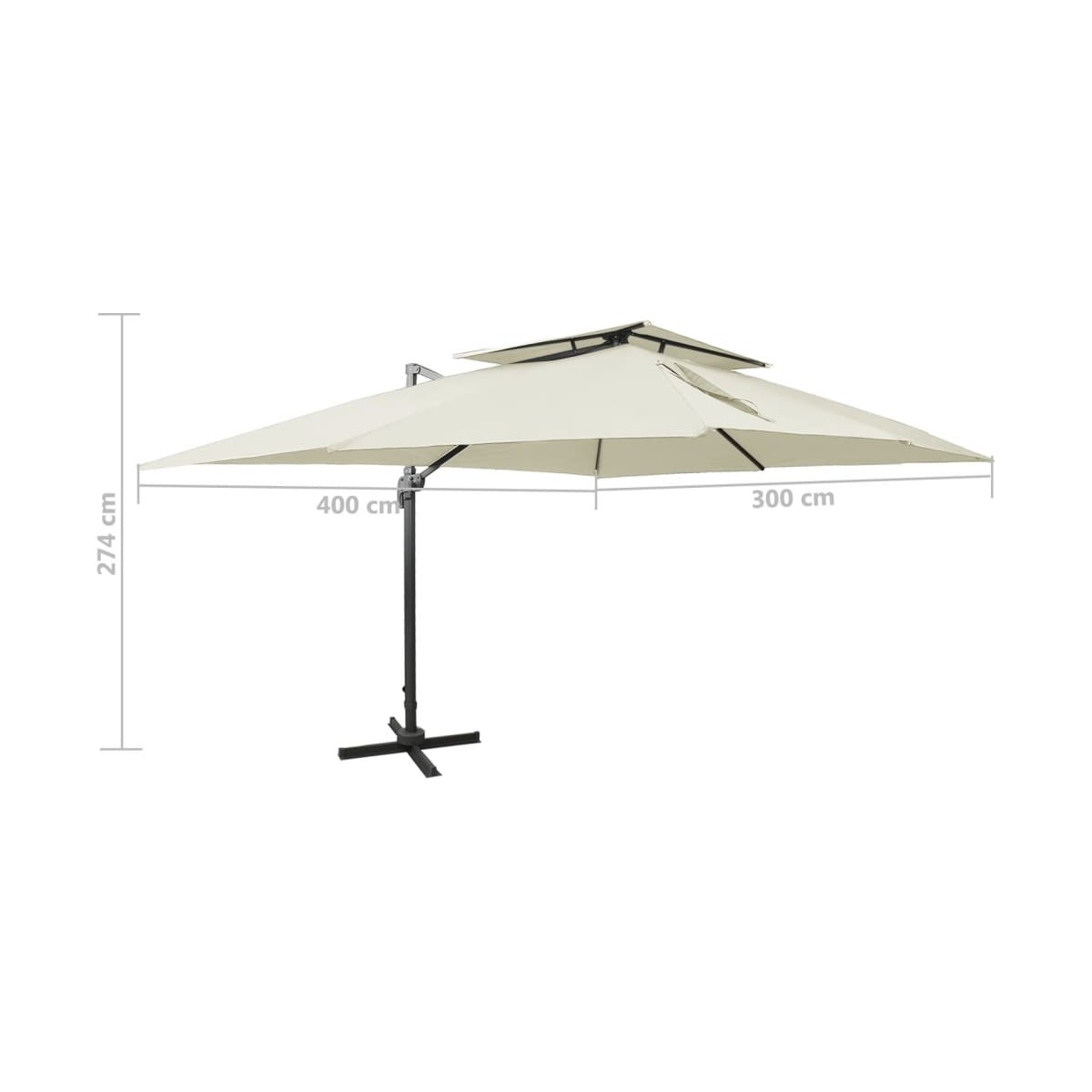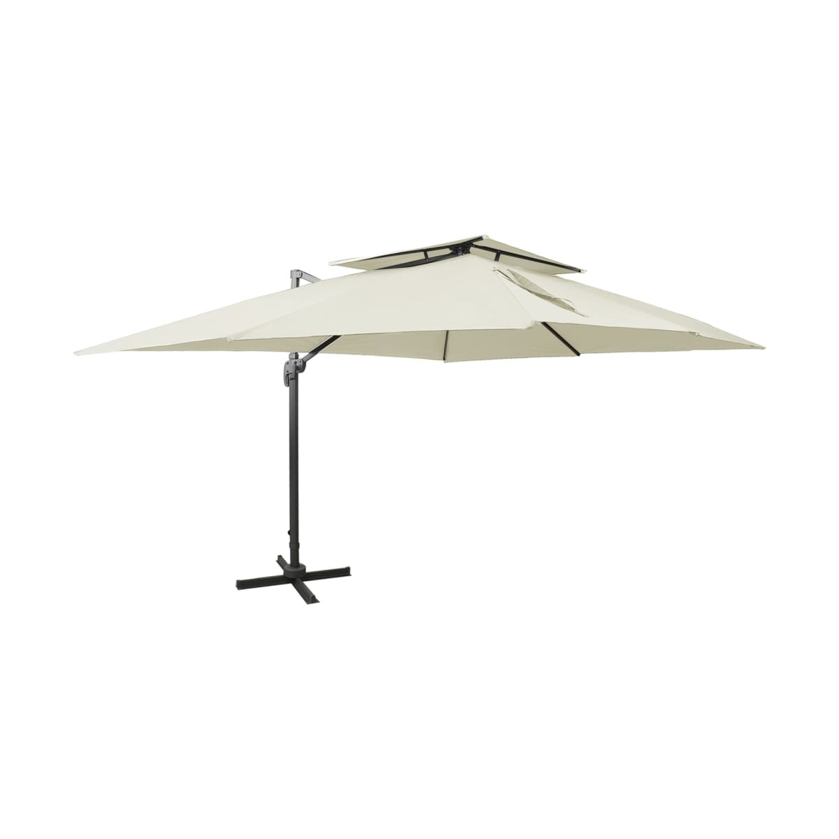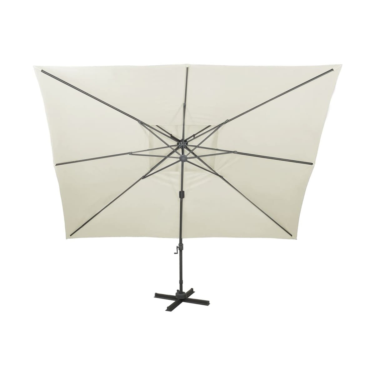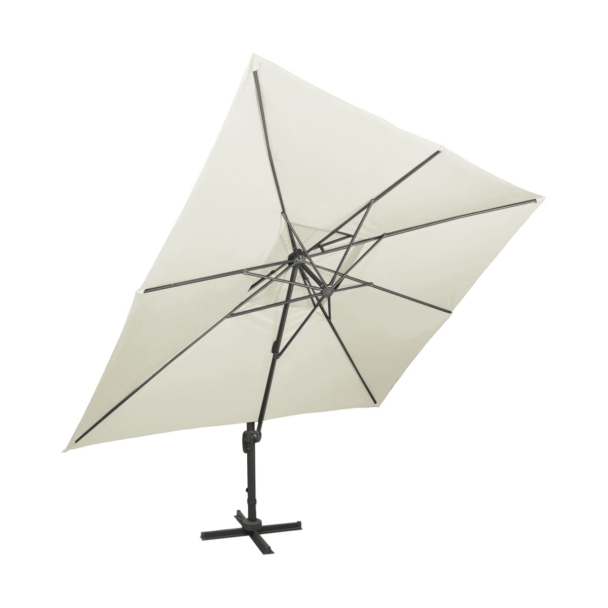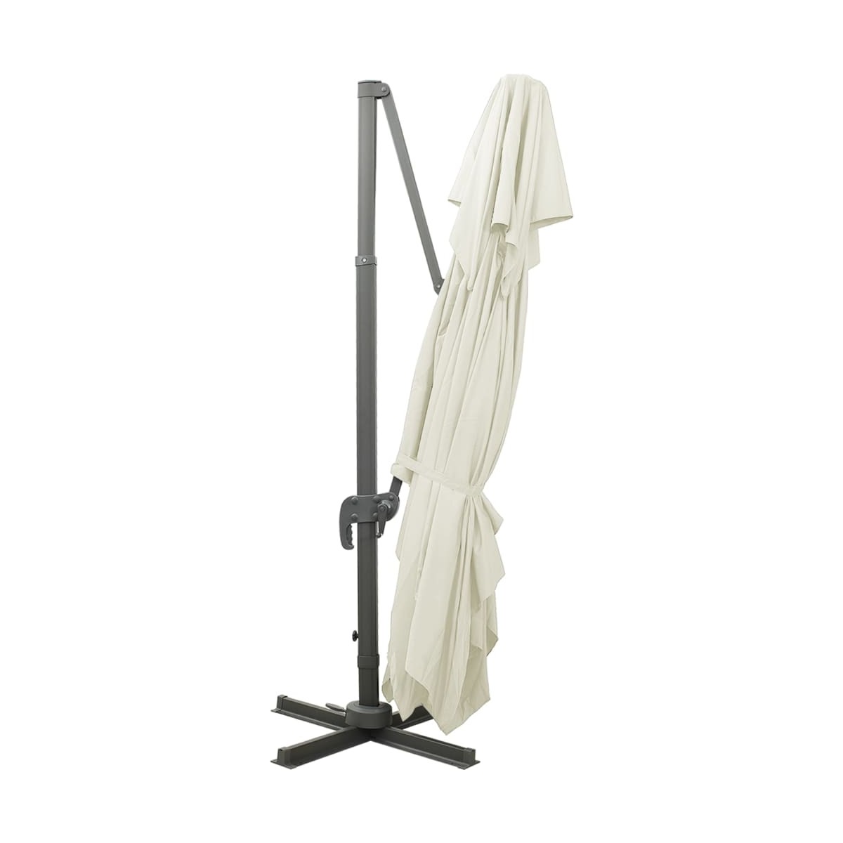 Esta sombrilla de jardín voladiza es perfecta para crear un poco de sombra y protegerte de los dañinos rayos UV del sol. Hecha de poliéster con protección contra rayos ultravioleta que no se destiñe, la cubierta de la sombrilla le brinda una protección óptima contra el sol y es fácil de limpiar. Viene con una base cruzada robusta para agregar estabilidad. El diseño exclusivo de esta sombrilla le permite inclinar la sombrilla y girarla 360 grados para bloquear el sol. El fuerte poste de aluminio, junto con las 8 varillas, hace que la sombrilla sea muy estable y duradera. Esta sombrilla de jardín puede abrirse y cerrarse fácilmente gracias al mecanismo de manivela. Además, el dosel de diseño de doble techo favorece la ventilación. Ten en cuenta que recomendamos tratar la tela de la sombrilla con un aerosol impermeabilizante si se ve sometida a fuertes lluvias.