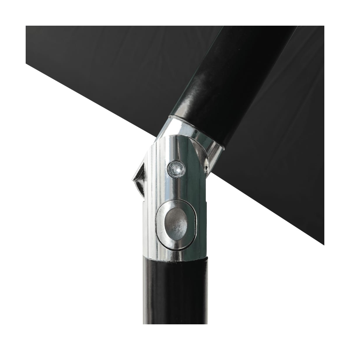 Esta sombrilla de jardín es la elección perfecta para protegerte tanto de los dañinos rayos UV como de la humedad de tu patio, terraza o jardín. Hecha de poliéster con protección UV y anti-decoloración, la sombrilla para exteriores puede brindarte una protección óptima contra el sol. El poste y las varillas de acero con recubrimiento en polvo también garantizan la estabilidad. Gracias al cigüeñal y la inclinación, la sombrilla es plegable y portátil. Se puede montar en tu soporte existente o en el medio de las mesas si hay agujeros disponibles. Las luces LED integradas, que funcionan con el panel solar, crearán un ambiente acogedor y romántico por la noche.