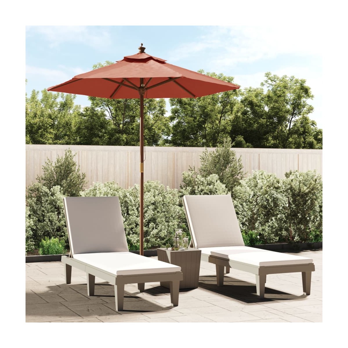 Esta sombrilla de jardín es perfecta para crear algo de sombra y protegerte de los dañinos rayos ultravioleta del sol. Material duradero: Hecha de poliéster antidecoloración y con protección UV, la sombrilla te proporciona la protección óptima contra el sol y es fácil de limpiar.Estructura estable: El fuerte poste de madera dura y las varillas duraderas hacen que la sombrilla de jardín sea muy estable y duradera.Ventilación contra el viento: La pieza extra de tela en la parte superior de la sombrilla permite circular el viento y el calor, por lo que el parasol es una elección maravillosa para el espacio al aire libre de la casa.Fácil de usar: La sombrilla de exterior se abre y se cierra con facilidad gracias al sistema de polea única. Nota:Este producto no es 100% impermeable. Recomendamos tratar este producto con un spray impermeable para una mejor resistencia al agua.