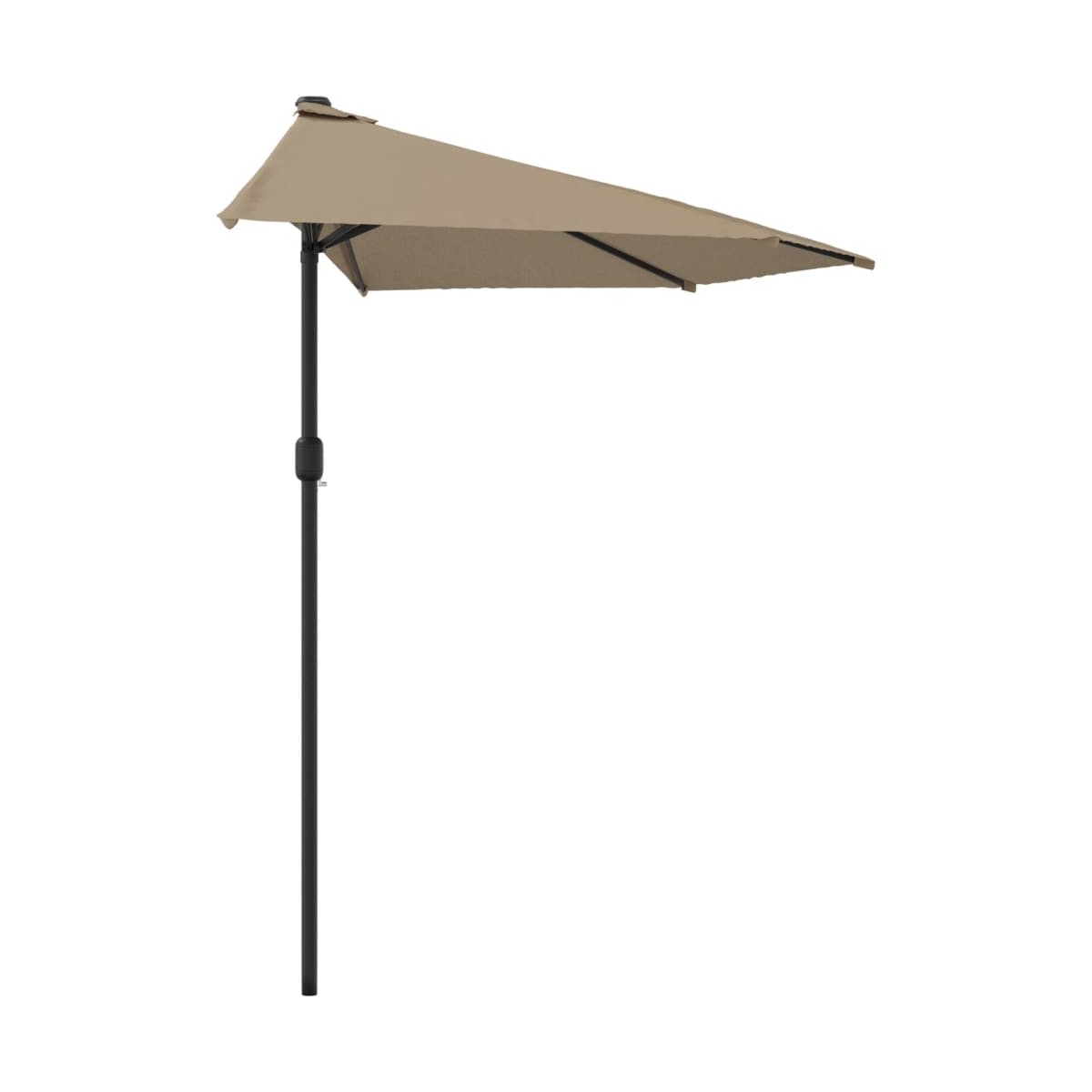 Esta elegante sombrilla de balcón es una elección perfecta para crear un poco de sombra y protegerse de los nocivos rayos UV del sol. La cubierta de la sombrilla, hecha con protección contra rayos ultravioleta y poliéster que no se destiñe, le brinda una protección óptima contra el sol y es fácil de limpiar. Con un diámetro de poste de 38 mm, podría montarse en el soporte o en el medio de mesas con agujero. Su diseño de forma semicircular también aporta un encanto único a la sombrilla. El poste de aluminio fuerte, junto con las 5 varillas de acero robusto, hacen que la sombrilla sea muy estable y duradera. La sombrilla de jardín puede abrirse y cerrarse fácilmente gracias al mecanismo de manivela. El artículo es fácil de montar. Tenga en cuenta que el soporte de la sombrilla no está incluido en la entrega. Recomendamos tratar el tejido de la sombrilla con un rociador impermeabilizante si está sujeto a fuertes lluvias.
