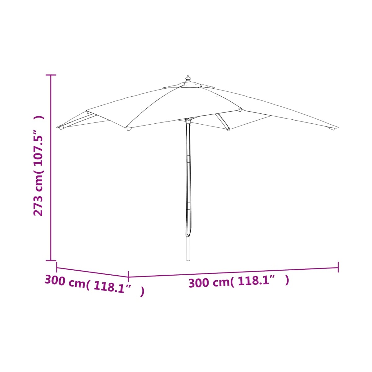 Esta sombrilla de jardín es perfecta para crear algo de sombra y protegerte de los dañinos rayos ultravioleta del sol. Material duradero: Hecha de poliéster antidecoloración y con protección UV, la sombrilla te proporciona la protección óptima contra el sol y es fácil de limpiar.Estructura estable: El fuerte poste de madera dura y las varillas duraderas hacen que la sombrilla de jardín sea muy estable y duradera.Ventilación contra el viento: La pieza extra de tela en la parte superior de la sombrilla permite circular el viento y el calor, por lo que el parasol es una elección maravillosa para el espacio al aire libre de la casa.Fácil de usar: La sombrilla de exterior se abre y se cierra con facilidad gracias al sistema de polea doble. Nota:Este producto no es 100% impermeable. Recomendamos tratar este producto con un spray impermeable para una mejor resistencia al agua.