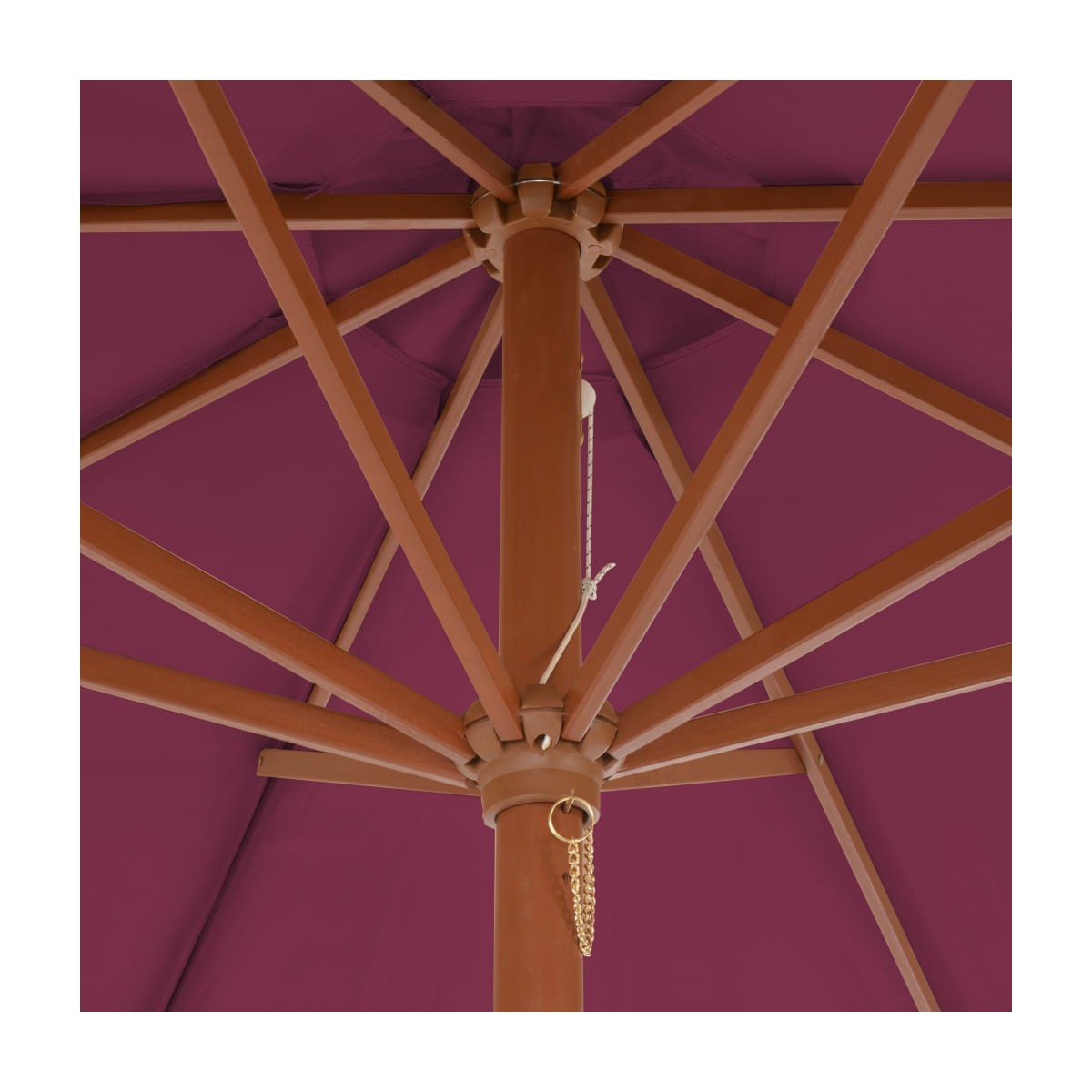 Esta elegante sombrilla de madera de jardín es perfecta para crear algo de sombra y protegerte de los dañinos rayos UV del sol. Hecha de poliéster con protección contra rayos ultravioleta que no se destiñe, la cubierta de la sombrilla brinda una protección óptima contra el sol y es fácil de limpiar. Con un palo con diámetro de 48 mm, podría montarse en un soporte existente o en el medio de mesas con agujero. El fuerte poste de acero, junto con las 8 varillas robustas, hacen que la sombrilla sea muy estable y duradera. La sombrilla de jardín se abre y se cierra fácilmente gracias al mecanismo de manivela. El artículo es fácil de montar. Ten en cuenta que recomendamos tratar la tela de la sombrilla con un aerosol impermeabilizante si se ve sometida a fuertes lluvias.