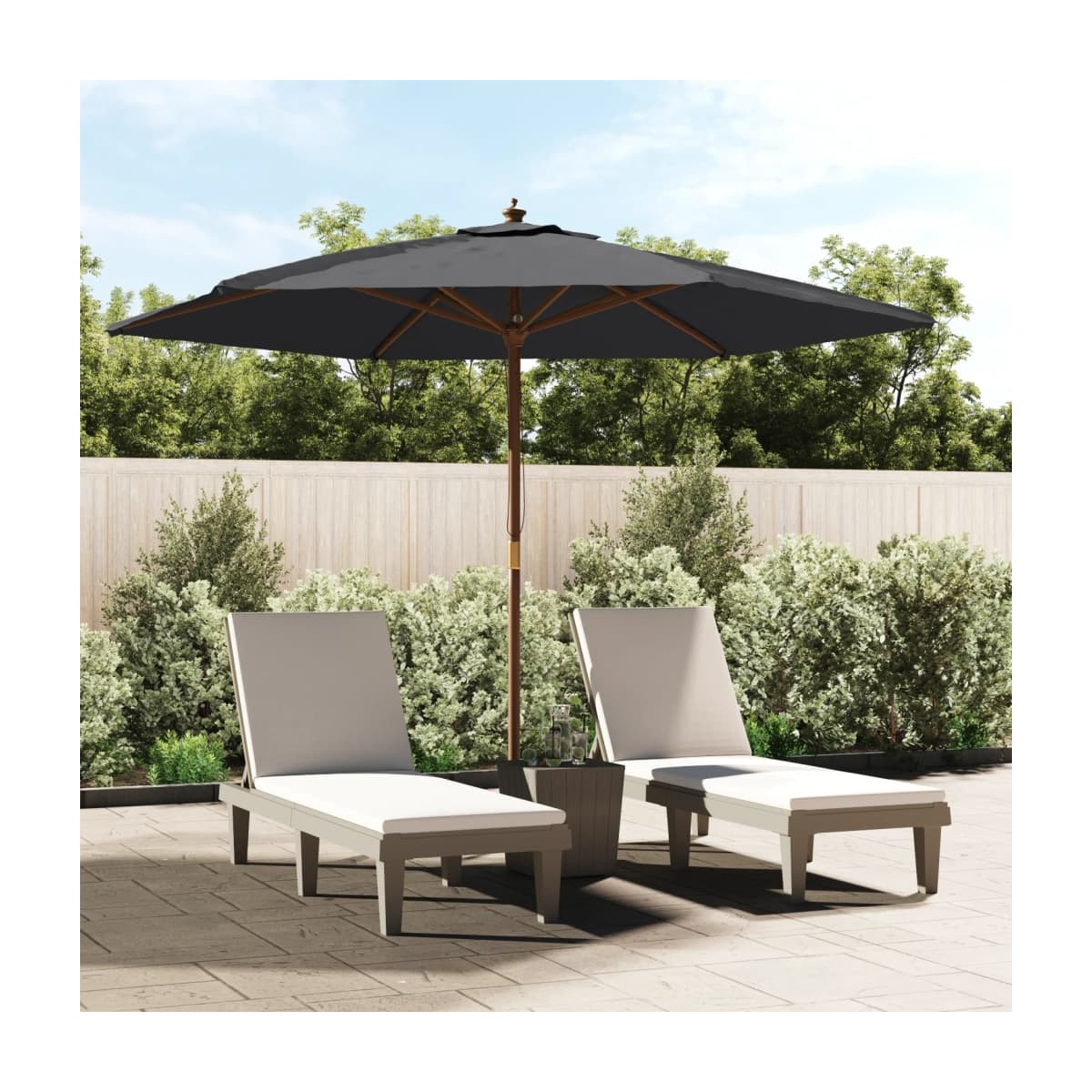 Esta sombrilla de jardín es perfecta para crear algo de sombra y protegerte de los dañinos rayos ultravioleta del sol. Material duradero: Hecha de poliéster antidecoloración y con protección UV, la sombrilla te proporciona la protección óptima contra el sol y es fácil de limpiar.Estructura estable: El fuerte poste de madera dura y las varillas duraderas hacen que la sombrilla de jardín sea muy estable y duradera.Ventilación contra el viento: La pieza extra de tela en la parte superior de la sombrilla permite circular el viento y el calor, por lo que el parasol es una elección maravillosa para el espacio al aire libre de la casa.Fácil de usar: La sombrilla de exterior se abre y se cierra con facilidad gracias al sistema de polea única. Nota:Este producto no es 100% impermeable. Recomendamos tratar este producto con un spray impermeable para una mejor resistencia al agua.
