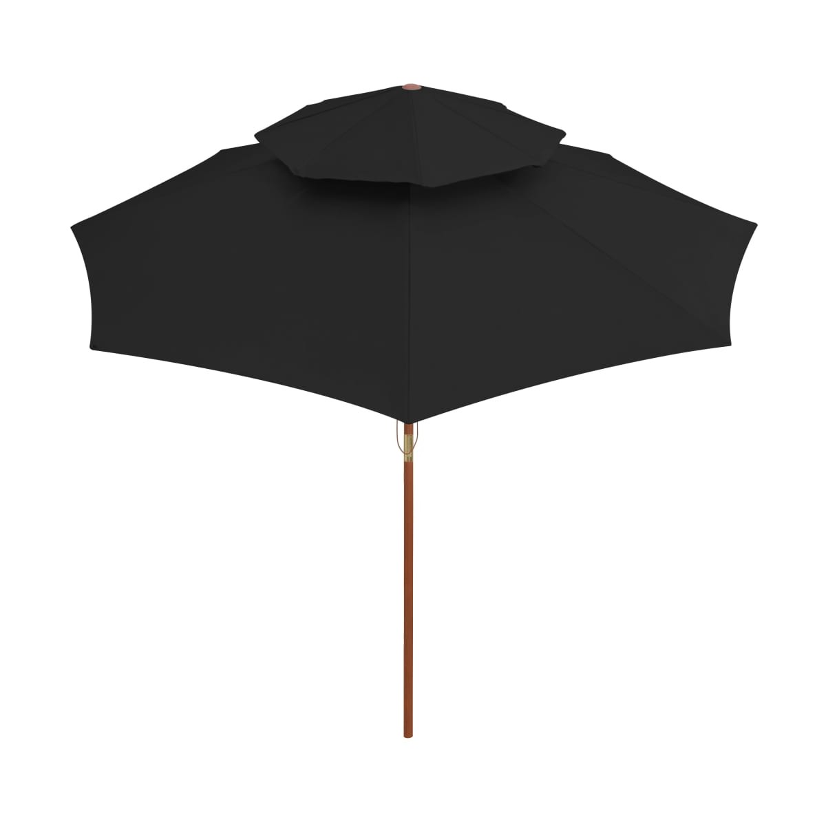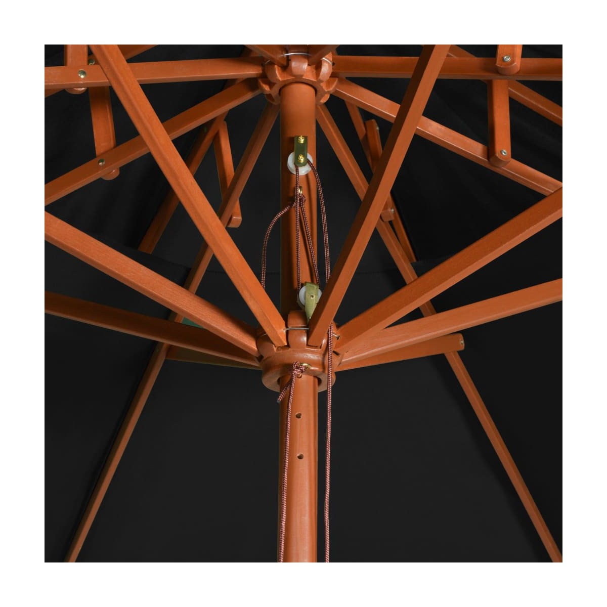 Esta elegante sombrilla de madera de jardín es perfecta para crear algo de sombra y protegerte de los dañinos rayos UV del sol. La cubierta de sombrilla, hecha con protección contra rayos ultravioleta y poliéster que no se destiñe, brinda una protección óptima contra el sol y es fácil de limpiar. Con un palo con diámetro de 38 mm, se puede montar en el soporte existente o en el centro de las mesas con agujero. El palo de madera fuerte, junto con las 8 varillas duraderas, hace que la sombrilla sea muy estable y duradera. La construcción de dos pisos permite la circulación de aire en un día caluroso. Esta sombrilla de jardín puede abrirse y cerrarse fácilmente gracias al sencillo mecanismo de polea. Ten en cuenta que recomendamos tratar la tela de la sombrilla con un aerosol impermeabilizante si se ve sometida a fuertes lluvias.
