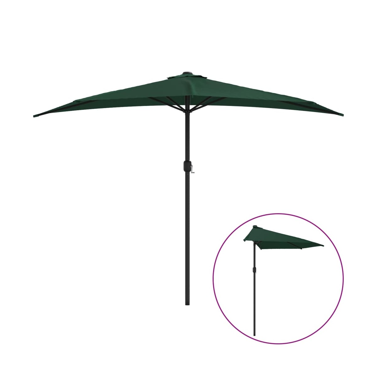 Esta elegante sombrilla de balcón es una elección perfecta para crear un poco de sombra y protegerse de los nocivos rayos UV del sol. La cubierta de la sombrilla, hecha con protección contra rayos ultravioleta y poliéster que no se destiñe, le brinda una protección óptima contra el sol y es fácil de limpiar. Con un diámetro de poste de 38 mm, podría montarse en el soporte o en el medio de mesas con agujero. Su diseño de forma semicircular también aporta un encanto único a la sombrilla. El poste de aluminio fuerte, junto con las 5 varillas de acero robusto, hacen que la sombrilla sea muy estable y duradera. La sombrilla de jardín puede abrirse y cerrarse fácilmente gracias al mecanismo de manivela. El artículo es fácil de montar. Tenga en cuenta que el soporte de la sombrilla no está incluido en la entrega. Recomendamos tratar el tejido de la sombrilla con un rociador impermeabilizante si está sujeto a fuertes lluvias.