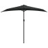 Esta elegante sombrilla de balcón es una elección perfecta para crear un poco de sombra y protegerse de los nocivos rayos UV del sol. La cubierta de la sombrilla, hecha con poliéster protector contra los rayos ultravioleta y que no destiñe, brinda una protección óptima contra el sol y es fácil de limpiar. Con un diámetro de poste de 38 mm, podría montarse en el soporte o en el medio de mesas con agujero. El diseño de forma semicircular también aporta un encanto único a la sombrilla. El palo de aluminio fuerte, junto con las 5 varillas de acero robusto, hacen que la sombrilla sea muy estable y duradera. La sombrilla de jardín puede abrirse y cerrarse fácilmente gracias al mecanismo de manivela. Nota: El soporte de la sombrilla no está incluido en la entrega. Recomendamos tratar el tejido de la sombrilla con un aerosol impermeabilizante si se ve sometido a fuertes lluvias.