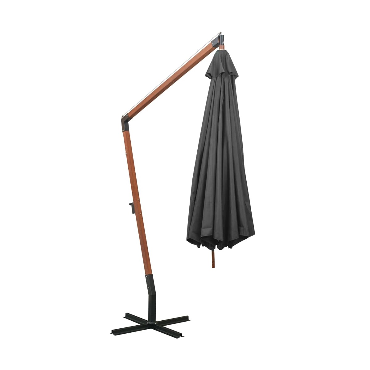 Esta llamativa sombrilla colgante de madera es una opción perfecta para crear un poco de sombra y protegerte de los nocivos rayos UVA del sol. Proporciona un espacio cómodo en el patio, la terraza o el jardín y cualquier otro espacio al aire libre. Fabricada con tejido de poliéster resistente a los rayos UV y que no destiñe, la cubierta de la sombrilla te proporciona una protección óptima contra el sol. El fuerte poste de madera maciza de abeto, junto con 8 robustas varillas de bambú y una base en cruz, garantiza una gran estabilidad. El toldo cuelga libremente sobre el palo, por lo que el palo no obstaculiza el espacio debajo de la sombrilla.