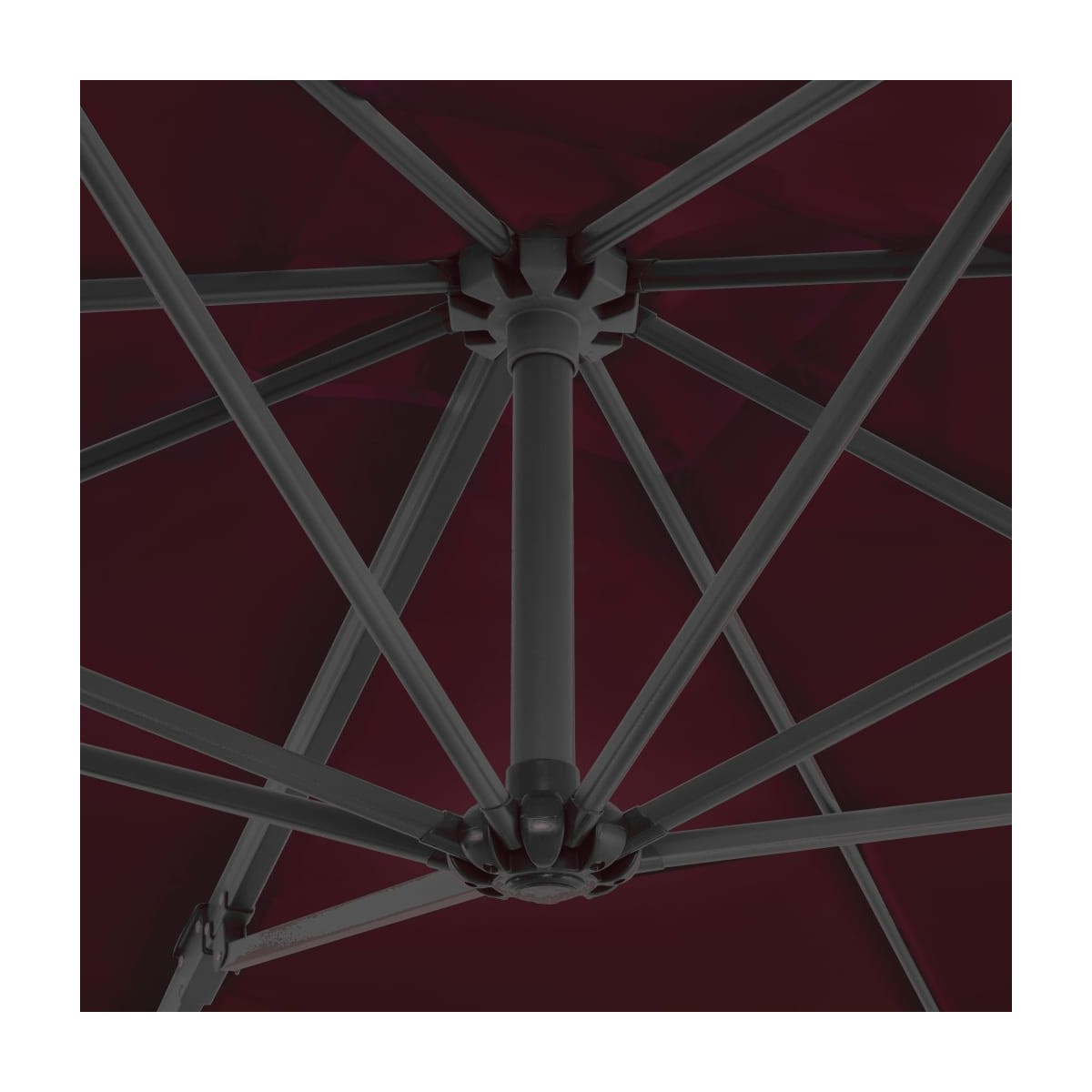 Esta elegante sombrilla voladiza es una elección perfecta para crear un poco de sombra y protegerse de los nocivos rayos UV del sol. Hecha de poliéster con protección contra rayos ultravioleta que no se destiñe, la cubierta de la sombrilla te brinda una protección óptima contra el sol y es fácil de limpiar. Viene con una base cruzada robusta para agregar estabilidad. El diseño exclusivo de esta sombrilla te permite inclinar la sombrilla y girarla 360 grados para bloquear el sol. El fuerte poste de aluminio, junto con las 8 varillas robustas, hace que la sombrilla sea muy estable y duradera. Esta sombrilla de jardín se puede abrir y cerrar fácilmente gracias al mecanismo de manivela. Ten en cuenta que recomendamos tratar la tela de la sombrilla con un aerosol impermeabilizante si se ve sometida a fuertes lluvias.