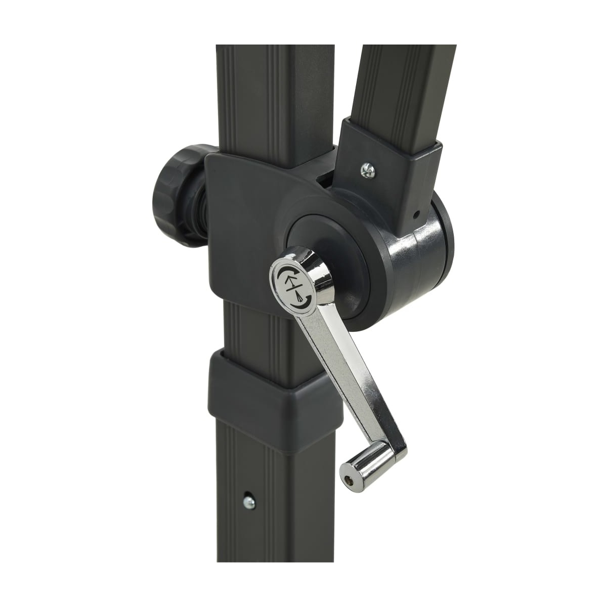 Esta sombrilla voladiza es perfecta para crear algo de sombra y protegerte de los dañinos rayos UVA del sol. Hecha de poliéster con protección contra rayos ultravioleta que no se destiñe, la cubierta de la sombrilla le brinda una protección óptima contra el sol y es fácil de limpiar. Viene con una base cruzada robusta para agregar estabilidad. El diseño exclusivo de esta sombrilla te permite inclinar la sombrilla y girarla 360 grados para bloquear el sol. El fuerte poste de aluminio, junto con las 8 varillas, hace que la sombrilla sea muy estable y duradera. Esta sombrilla de jardín se puede abrir y cerrar fácilmente gracias al mecanismo de manivela. Además, el dosel de diseño de doble techo ayuda a la ventilación. Ten en cuenta que recomendamos tratar la tela de la sombrilla con un aerosol impermeabilizante si se ve sometida a fuertes lluvias.