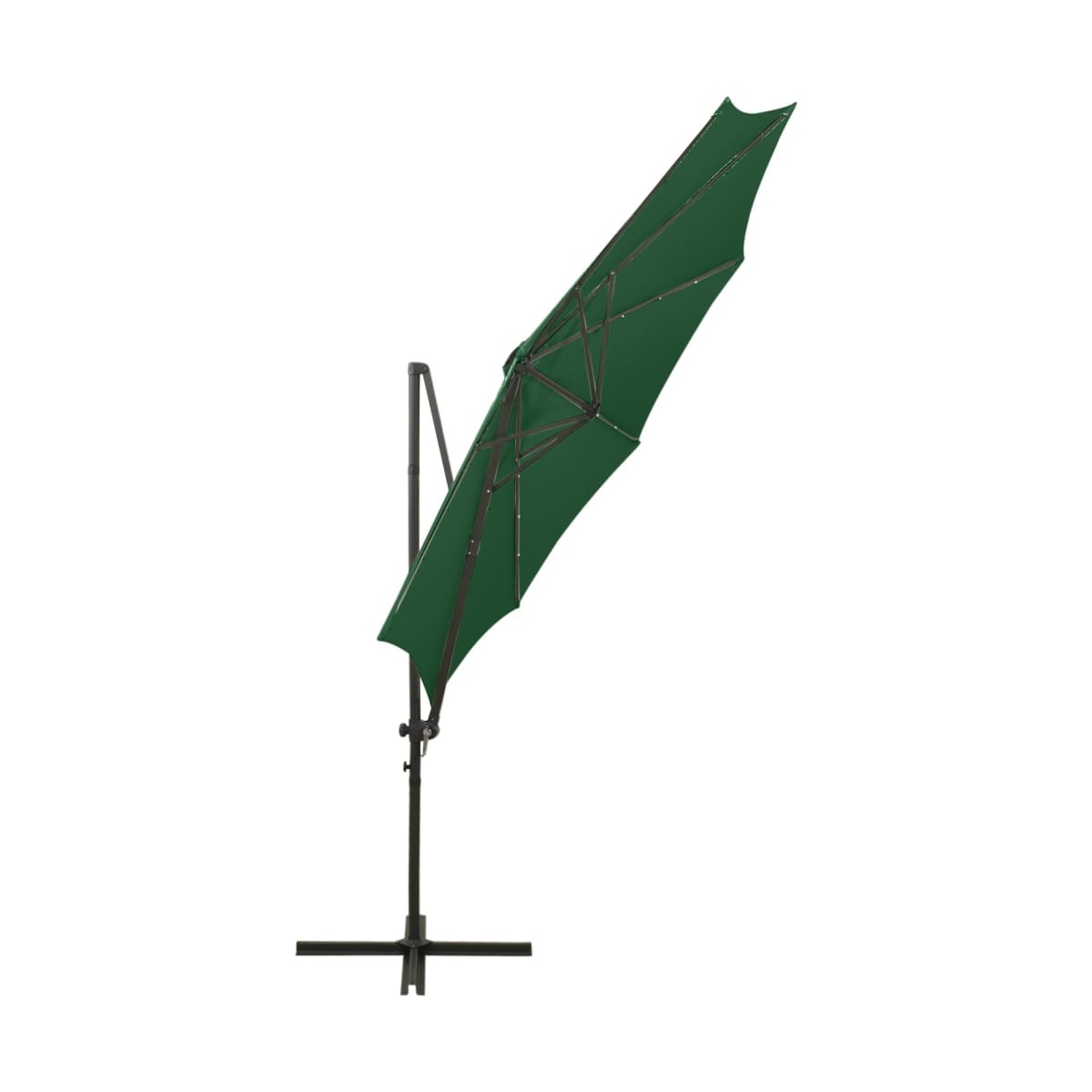 Esta sombrilla voladiza con luces LED es una excelente opción para crear algo de sombra y protección contra los dañinos rayos UV del sol. La funda para sombrilla, fabricada en poliéster con protección UV y resistente a la decoloración, proporciona una protección óptima contra el sol y es fácil de limpiar. Cuenta con una base cruzada resistente para mayor estabilidad. El diseño exclusivo de la sombrilla de jardín tepermite inclinarla y girarla 360 grados para bloquear el sol desde cualquier ángulo. El fuerte mástil de aluminio, junto con las 8 varillas, hace que la sombrilla sea muy estable y duradera. Esta sombrilla de jardín se puede abrir y cerrar fácilmente gracias al mecanismo de manivela. Además, esta sombrilla para patio cuenta con 24 LED para iluminar tu espacio al aire libre y crear un ambiente acogedor y romántico cuando se pone el sol. Nota: Recomendamos tratar la tela de la sombrilla con un spray impermeabilizante si se somete a fuertes lluvias. Nota: El producto tiene un conector USB, pero la fuente de alimentación USB de 5V certificada no está incluida.