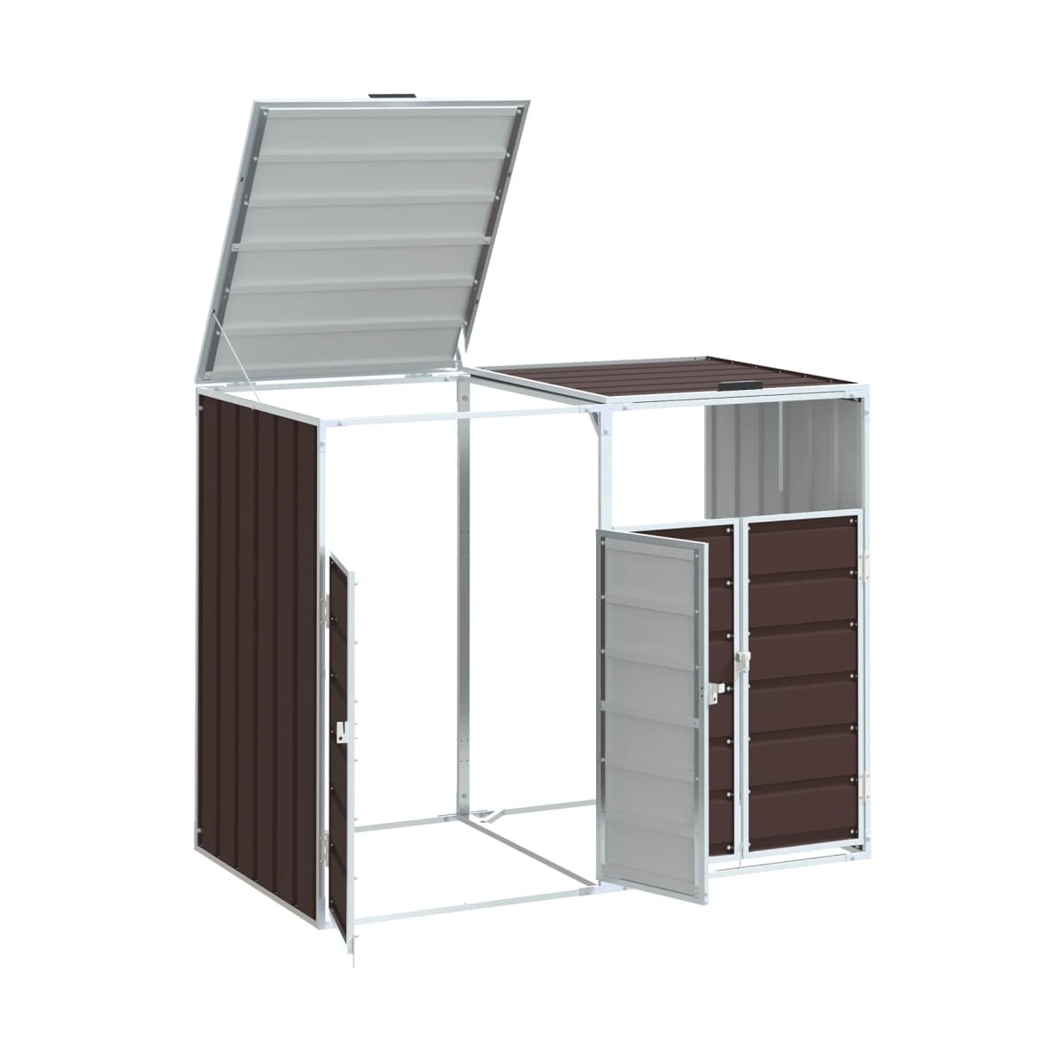 Este cobertizo para contenedores de basura oculta discretamente sus cubos de basura en el jardín, transformando tu espacio exterior en un entorno bonito y ordenado. Material resistente y duradero: El acero con recubrimiento en polvo proporciona solidez, estabilidad, durabilidad y resistencia a la corrosión y a las condiciones climáticas adversas, lo que garantiza un rendimiento duradero.Práctico mecanismo de tapa: La tapa viene con cadenas que conectan la tapa de tu cubo a ella, de modo que la tapa del cubo se abre automáticamente cuando levantas la tapa del almacén de cubos.Fácil acceso: Las puertas frontales con un sistema de cierre facilitan la extracción y sustitución de los contenedores, lo que garantiza la eliminación de residuos sin esfuerzo.Buena ventilación: Estas rejillas de ventilación de los paneles favorecen la circulación del aire, lo que evita la acumulación de olores y mantiene los cubos frescos.Diseño flexible: Puedes ampliar este almacenamiento de contenedores con ruedas para contener más contenedores agregando extensiones adicionales. Estas extensiones están disponibles para su compra individual en la tienda.