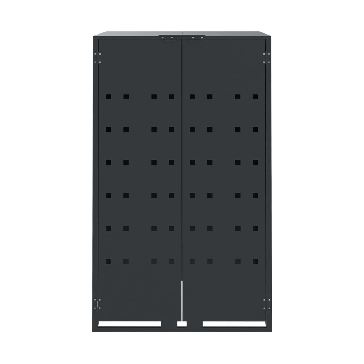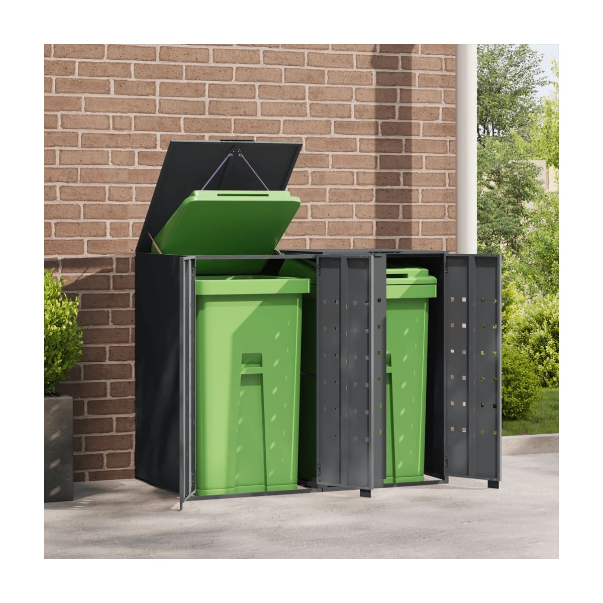 Este cobertizo para contenedores de basura oculta discretamente sus cubos de basura en el jardín, transformando tu espacio exterior en un entorno bonito y ordenado. Material resistente y duradero: El acero con recubrimiento en polvo proporciona solidez, estabilidad, durabilidad y resistencia a la corrosión y a las condiciones climáticas adversas, lo que garantiza un rendimiento duradero.Práctico mecanismo de tapa: La tapa con resorte de gas viene con un cordón elástico que conecta la tapa del contenedor a él, por lo que la tapa del contenedor se abre automáticamente cuando se levanta la tapa del cobertizo.Fácil acceso: Las puertas frontales con cierres magnéticos facilitan la extracción y sustitución de los contenedores, lo que garantiza la eliminación de residuos sin esfuerzo.Buena ventilación: Estas rejillas de ventilación de los paneles favorecen la circulación del aire, lo que evita la acumulación de olores y mantiene los cubos frescos.Diseño flexible: Puedes ampliar tu cobertizo de contenedores de basura para acomodar más cubos añadiendo extensiones adicionales. Estas extensiones están disponibles para tu compra individual en la tienda.