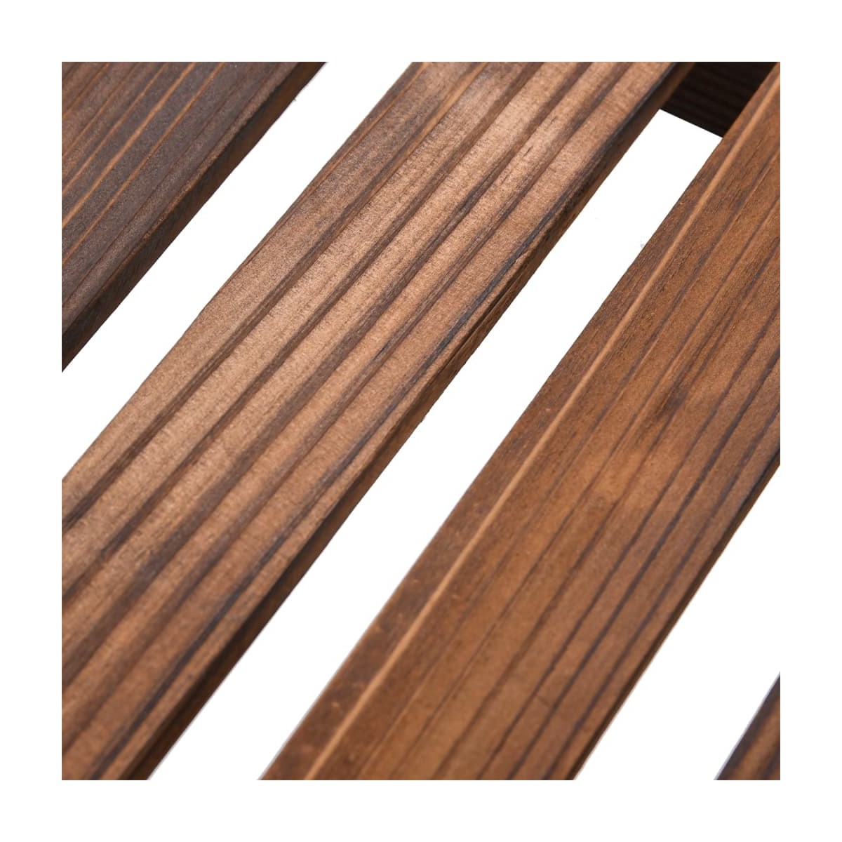 Este soporte para flores de madera con ruedas es una opción perfecta para colocar y exhibir tus plantas y otros elementos decorativos. Madera de abeto duradera: Este soporte para plantas está hecho de madera de abeto, que es resistente y duradera, lo que garantiza años de vida útil. Además, como está carbonizada artesanalmente con mucho cuidado, esta estantería para flores de madera tiene un excelente rendimiento en lo que se refiere a la humedad y la resistencia a la intemperie.Amplio espacio: Este estante para plantas ofrece suficiente espacio para colocar plantas y otros artículos decorativos.Amplios usos: Con un color carbonizado natural y textura de madera, este soporte de madera para macetas aporta un toque retro y elegante a la decoración. Además, el diseño simétrico combinará con diferentes estilos de decoración, como el de la sala de estar, el balcón o el patio.Ruedas consideradas: Con ruedas giratorias de 360 grados, los estantes para plantas sobre ruedas se pueden mover de manera flexible. Información útil:Para facilitar al máximo el montaje, cada producto se entrega con un manual.