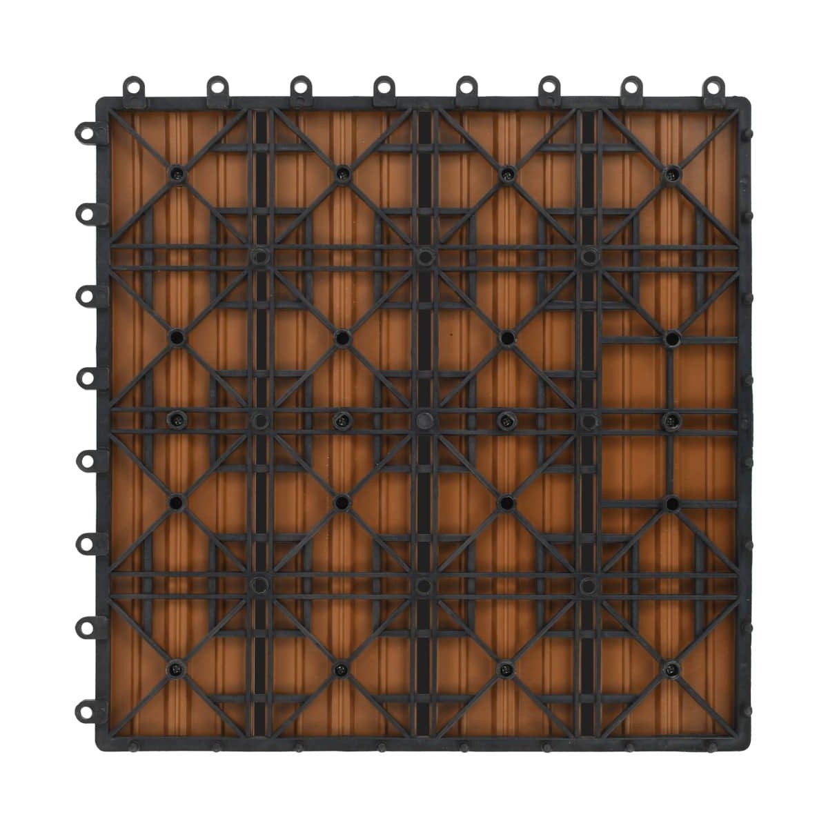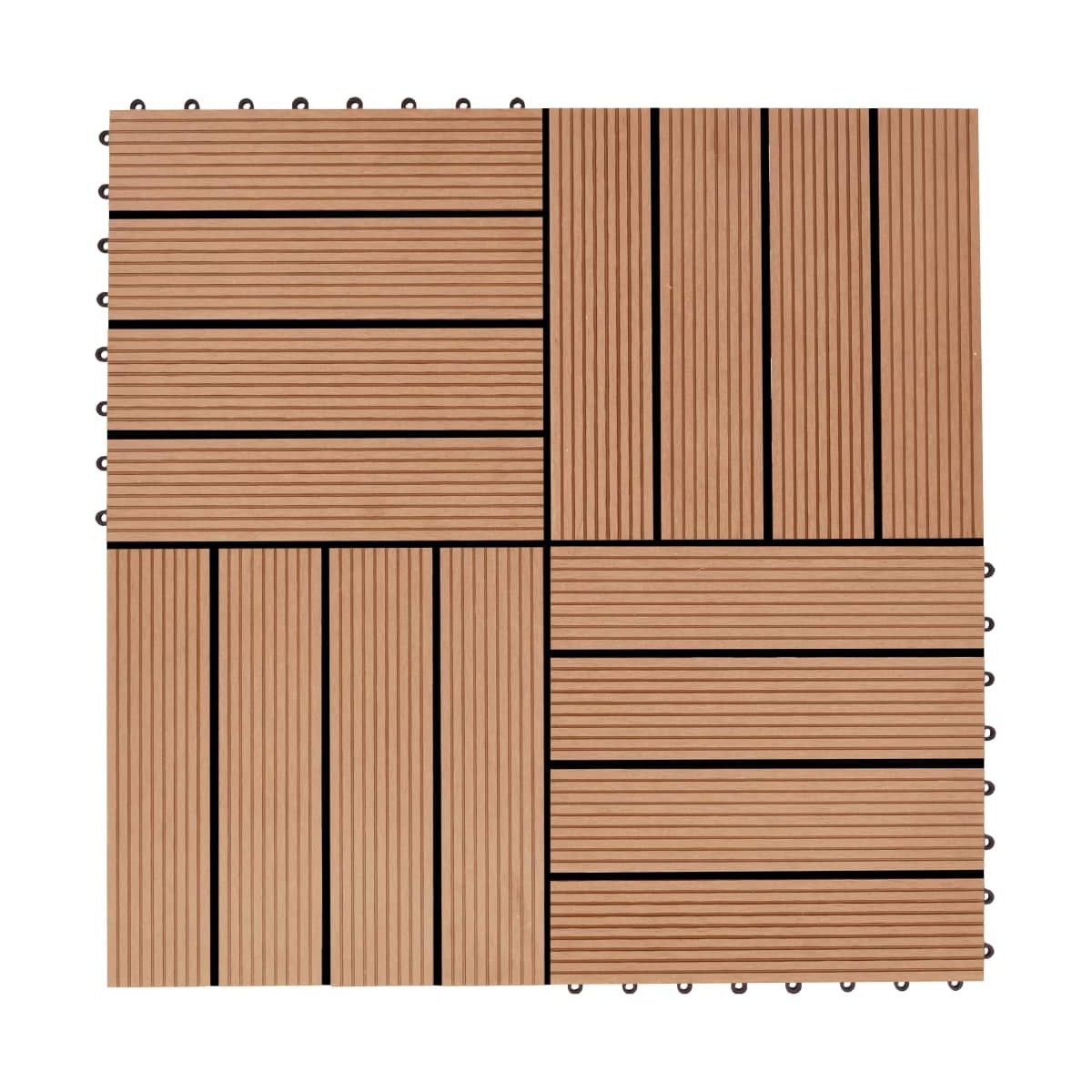 Este conjunto de baldosas de plataforma de WPC, con un azulejo de tamaño de 30 x 30 cm, consta de 22 piezas y cubre una superficie de 2 metros cuadrados. Será perfecto para patios, balcones, baños...