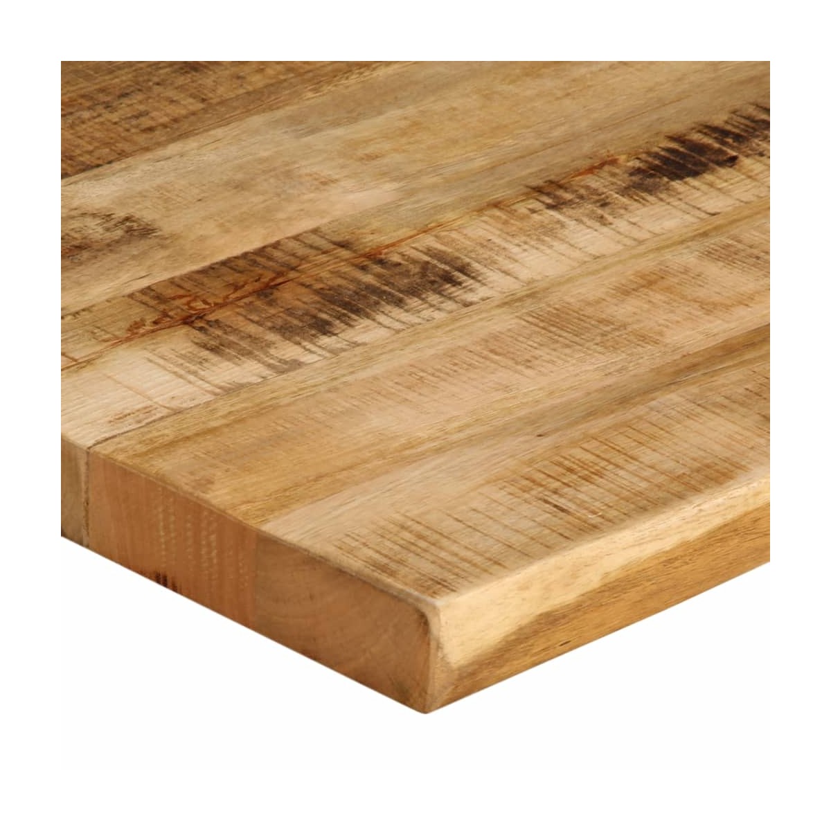 Dale una nueva vida a tu mesa con esta superficie de mesa de madera. Es una excelente solución para renovar tu mesa en casa o en un local comercial. Madera maciza de mango: La madera maciza de mango es una madera dura, tropical y resistente, que sirve para hacer muebles robustos. Las bonitas vetas de la madera hacen que cada mueble sea ligeramente diferente al resto.Diversos usos: El tablero de repuesto se puede combinar con diferentes bases según tus necesidades.Diseño de borde natural: El tablero para muebles de madera tiene un rústico borde vivo. Debido a ello, los nudos, las grietas, las formas ligeramente curvadas y los tonos de color forman parte de la madera de roble, y cada pieza de la estantería tiene su carácter único.Superficie fácil de limpiar: La superficie lisa es fácil de limpiar con un paño húmedo. Información útil:Cada artículo es único, con variaciones de color y veta. La entrega es aleatoria garantizando la exclusividad y la individualidad del producto.