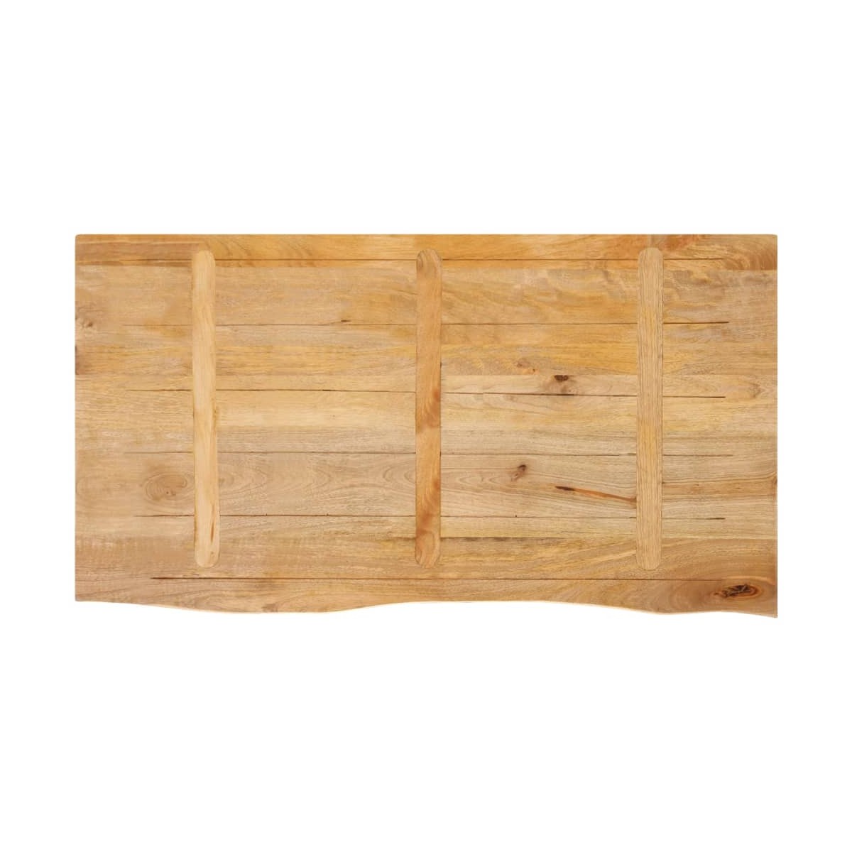 Dale una nueva vida a tu mesa con esta superficie de mesa de madera. Es una excelente solución para renovar tu mesa en casa o en un local comercial. Madera maciza de mango: La madera maciza de mango es una madera dura, tropical y resistente, que sirve para hacer muebles robustos. Las bonitas vetas de la madera hacen que cada mueble sea ligeramente diferente al resto. Diversos usos: El tablero de repuesto se puede combinar con diferentes bases según tus necesidades. Diseño de arista viva: El tablero para muebles de madera tiene un rústico borde vivo. Debido a ello, los nudos, las grietas, las formas ligeramente curvadas y los tonos de color forman parte de él, y cada estante tiene un carácter único. Superficie fácil de limpiar: La superficie lisa es fácil de limpiar con un paño húmedo. Información útil:Cada artículo es único, con variaciones de color y veta. La entrega es aleatoria garantizando la exclusividad y la individualidad del producto.