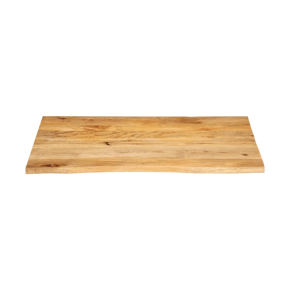 Dale una nueva vida a tu mesa con esta superficie de mesa de madera. Es una excelente solución para renovar tu mesa en casa o en un local comercial. Madera maciza de mango: La madera maciza de mango es una madera dura, tropical y resistente, que sirve para hacer muebles robustos. Las bonitas vetas de la madera hacen que cada mueble sea ligeramente diferente al resto. Diversos usos: El tablero de repuesto se puede combinar con diferentes bases según tus necesidades. Diseño de arista viva: El tablero para muebles de madera tiene un rústico borde vivo. Debido a ello, los nudos, las grietas, las formas ligeramente curvadas y los tonos de color forman parte de él, y cada estante tiene un carácter único. Superficie fácil de limpiar: La superficie lisa es fácil de limpiar con un paño húmedo. Información útil:Cada artículo es único, con variaciones de color y veta. La entrega es aleatoria garantizando la exclusividad y la individualidad del producto.