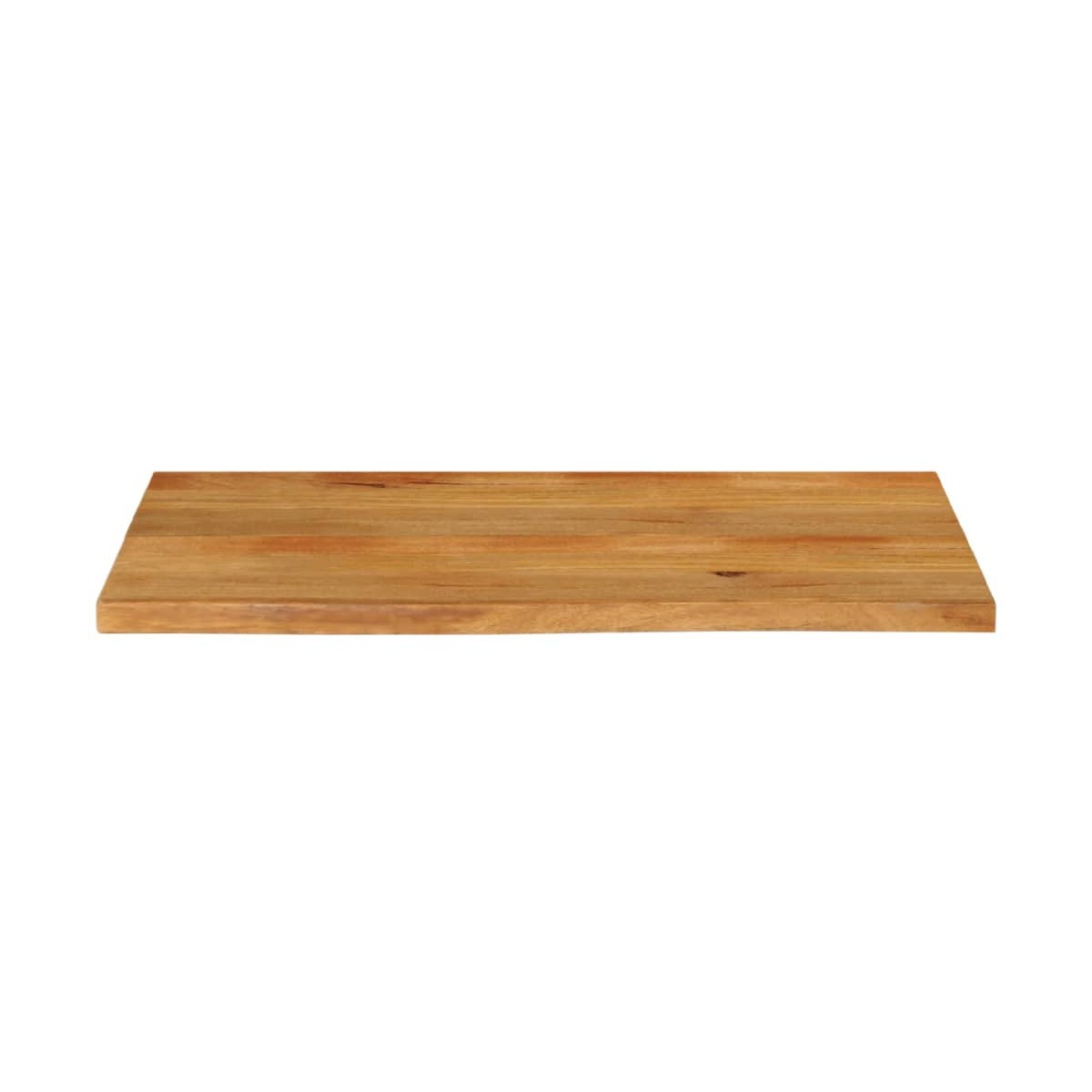 Dale una nueva vida a tu mesa con esta superficie de mesa de madera. Es una excelente solución para renovar tu mesa en casa o en un local comercial. Madera maciza de mango: La madera maciza de mango es una madera dura, tropical y resistente, que sirve para hacer muebles robustos. Las bonitas vetas de la madera hacen que cada mueble sea ligeramente diferente al resto. Diversos usos: El tablero de repuesto se puede combinar con diferentes bases según tus necesidades. Diseño de arista viva: El tablero para muebles de madera tiene un rústico borde vivo. Debido a ello, los nudos, las grietas, las formas ligeramente curvadas y los tonos de color forman parte de él, y cada estante tiene un carácter único. Superficie fácil de limpiar: La superficie lisa es fácil de limpiar con un paño húmedo. Información útil:Cada artículo es único, con variaciones de color y veta. La entrega es aleatoria garantizando la exclusividad y la individualidad del producto.