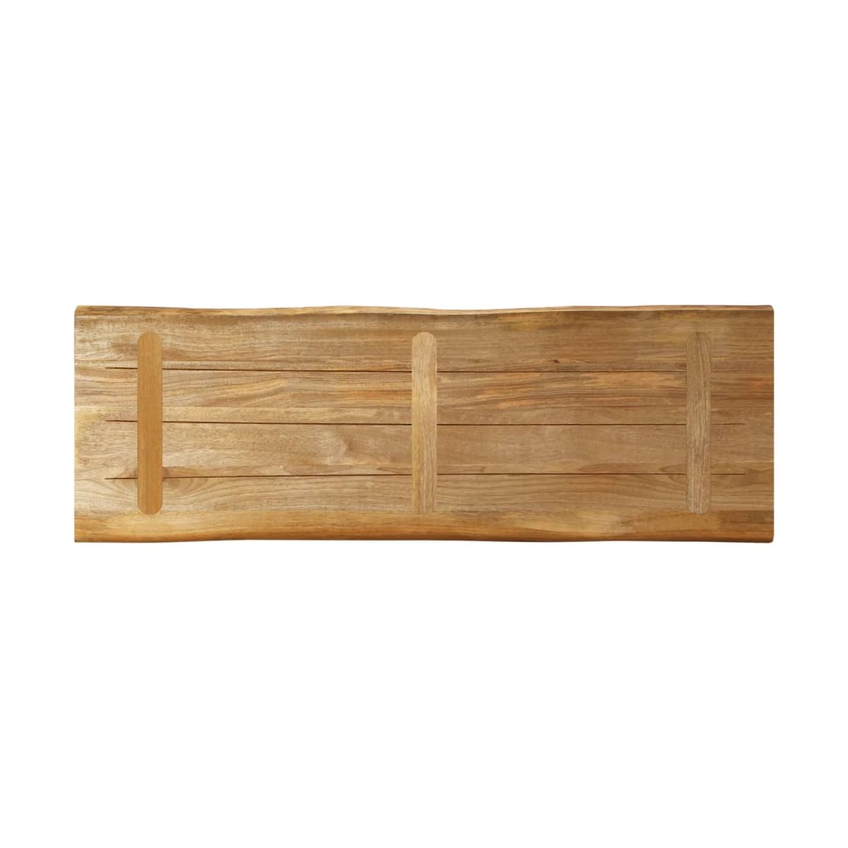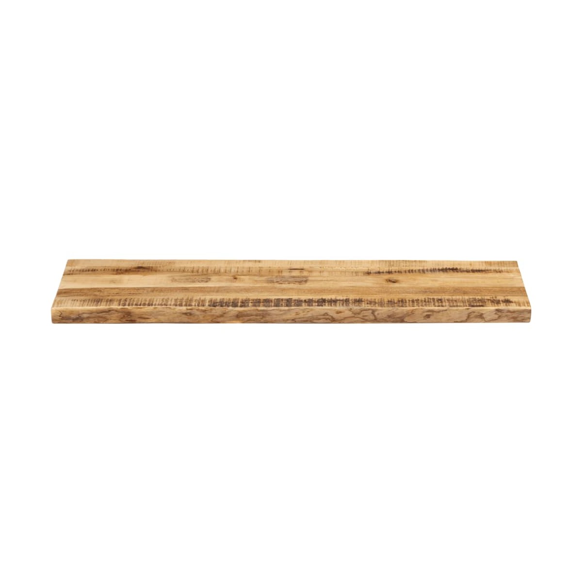 Dale una nueva vida a tu mesa con esta superficie de mesa de madera. Es una excelente solución para renovar tu mesa en casa o en un local comercial. Madera maciza de mango: La madera maciza de mango es una madera dura, tropical y resistente, que sirve para hacer muebles robustos. Las bonitas vetas de la madera hacen que cada mueble sea ligeramente diferente al resto.Diversos usos: El tablero de repuesto se puede combinar con diferentes bases según tus necesidades.Diseño de borde natural: El tablero para muebles de madera tiene un rústico borde vivo. Debido a ello, los nudos, las grietas, las formas ligeramente curvadas y los tonos de color forman parte de la madera de roble, y cada pieza de la estantería tiene su carácter único.Superficie fácil de limpiar: La superficie lisa es fácil de limpiar con un paño húmedo. Información útil:Cada artículo es único, con variaciones de color y veta. La entrega es aleatoria garantizando la exclusividad y la individualidad del producto.